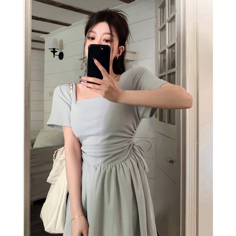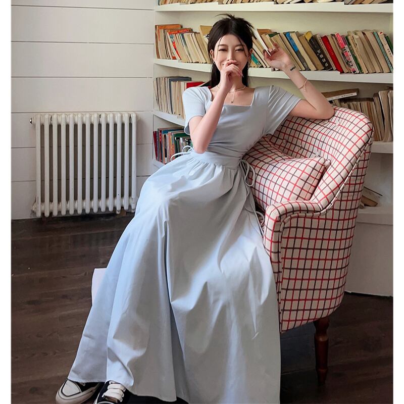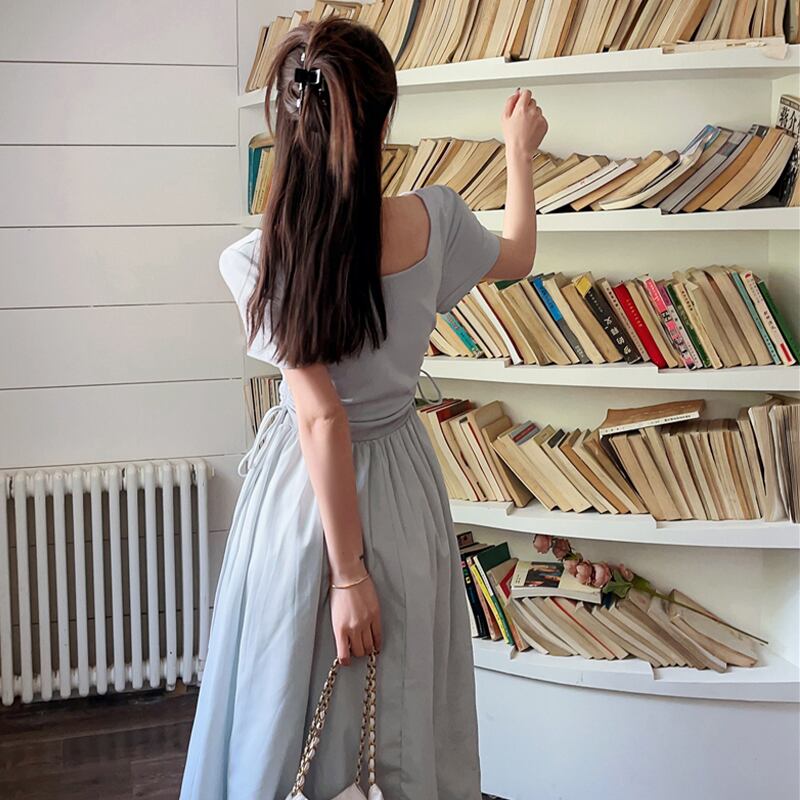 ワンピース OL/通勤 韓国系 スクエアネック Aライン 大振裾 グレー S M L