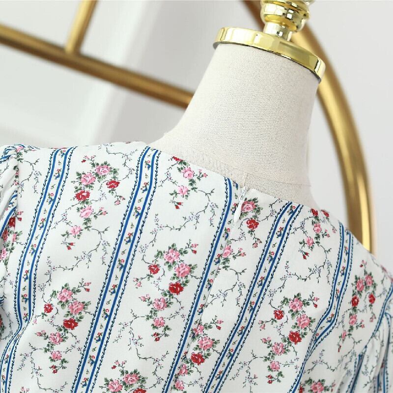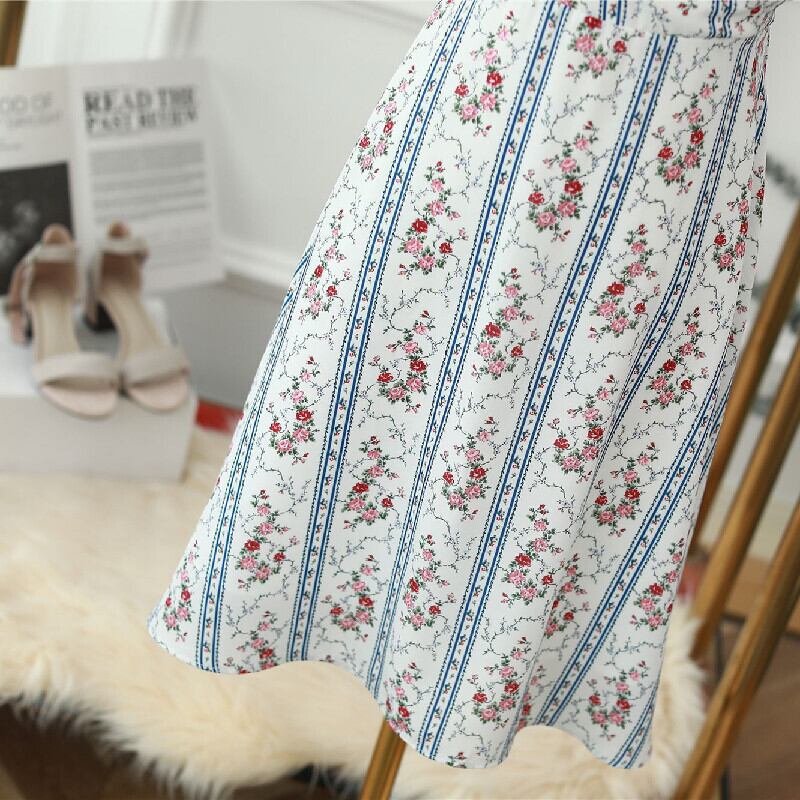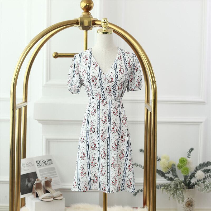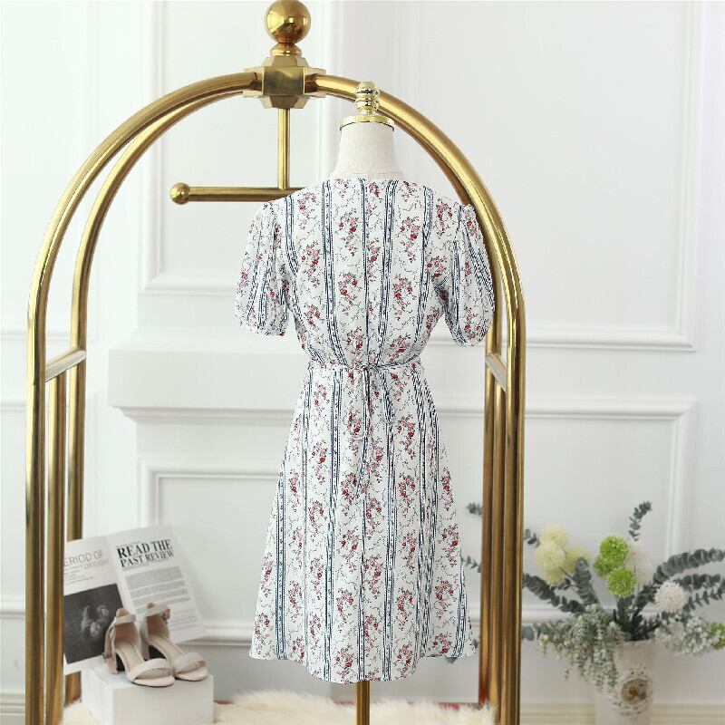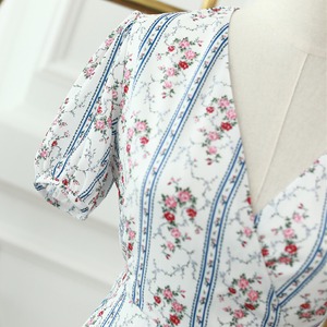 【Sunflowerシリーズ】ワンピース レトロ Vネック 花柄 Aライン パフスリーブ S M L