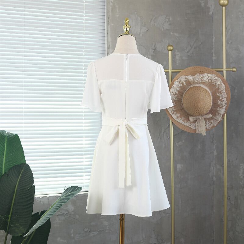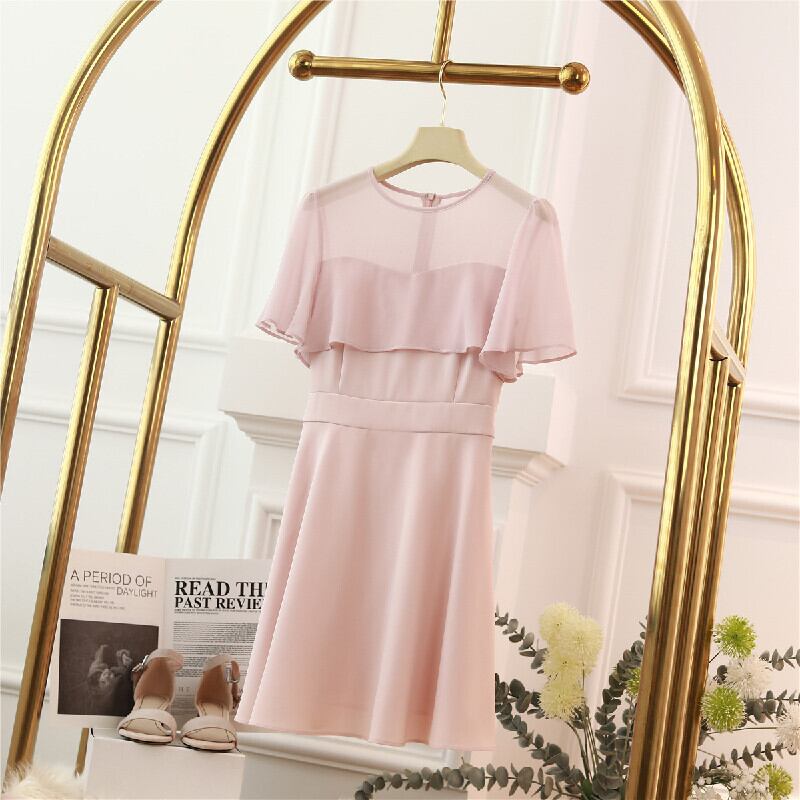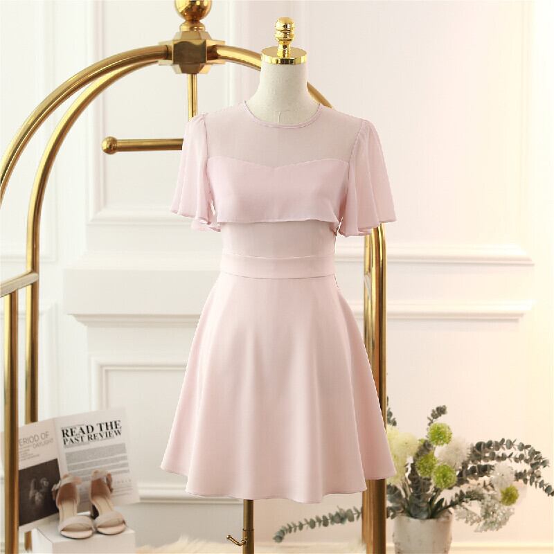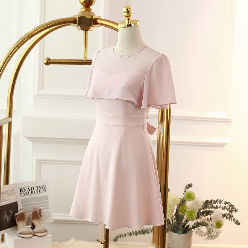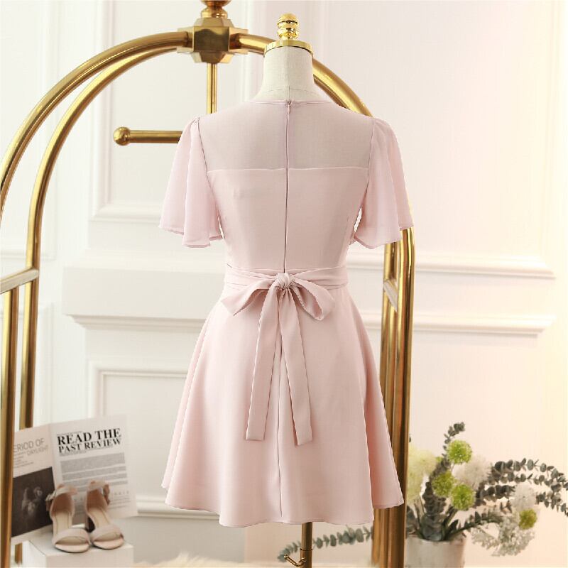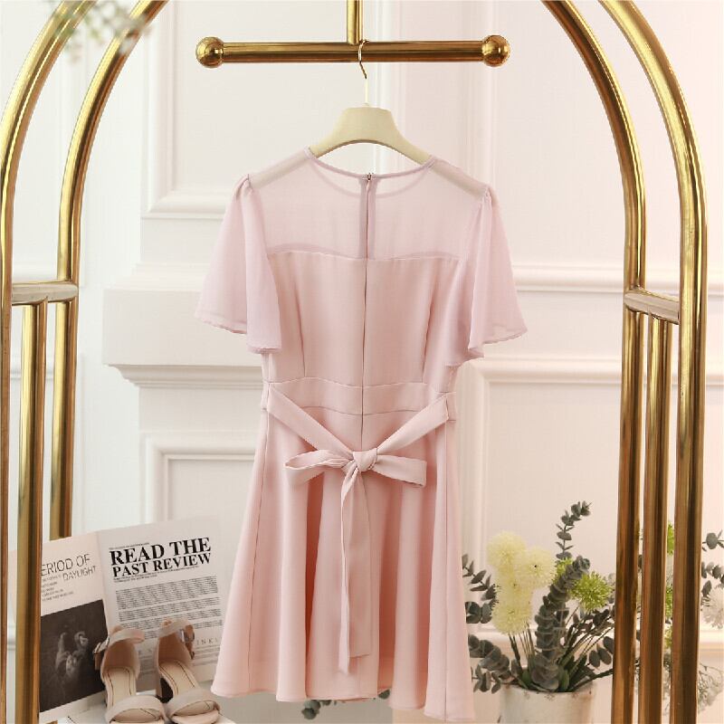 【Sunflowerシリーズ】ワンピース ラウンドネック 気質 Aライン デート ホワイト ピンク S M L