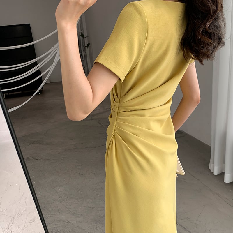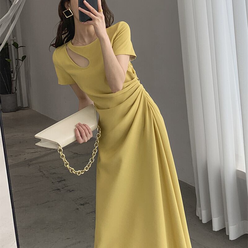 【森森家シリーズ】ワンピース 3色展開 デザイン感 グリーン イエロー ブラック S M L XL