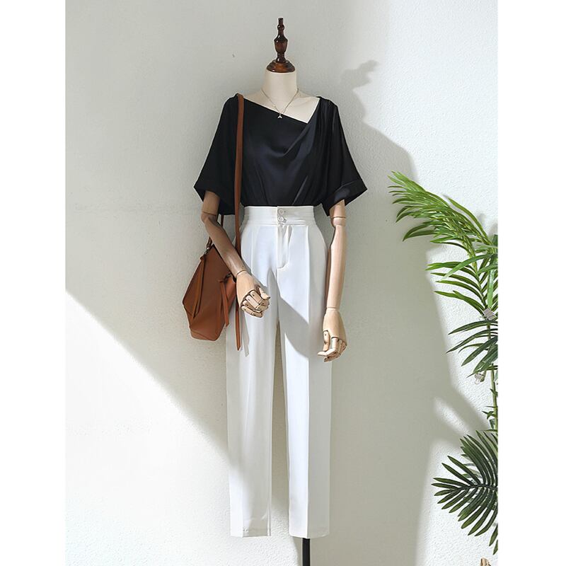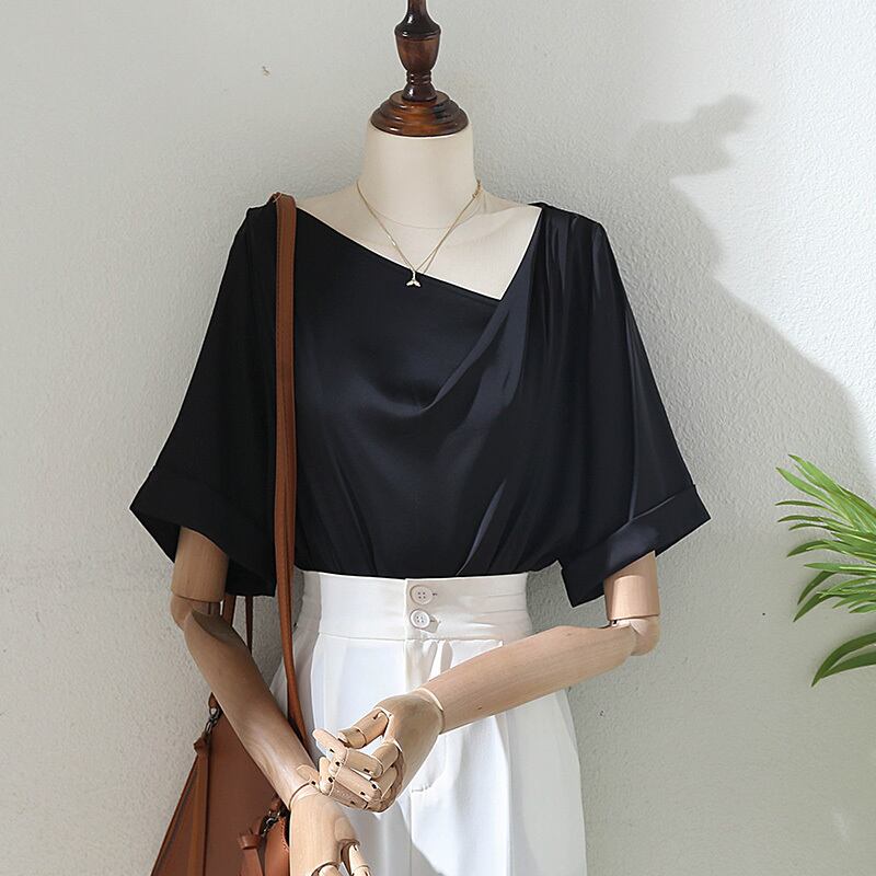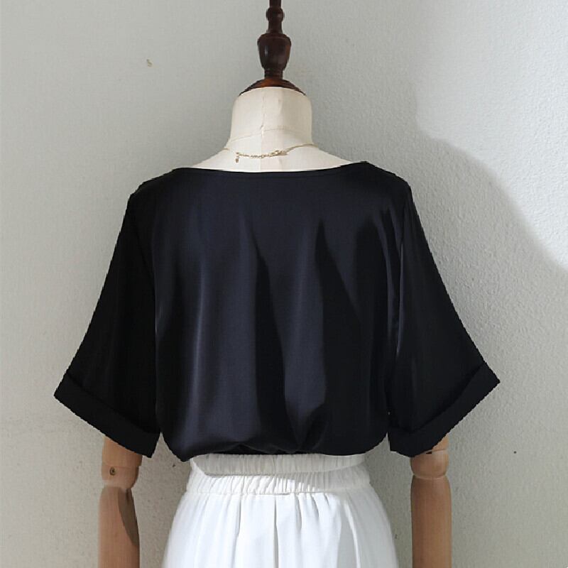 【清楚印象シリーズ】トップス シャツ 黒 デザイン感 通勤 ブラック S M L XL