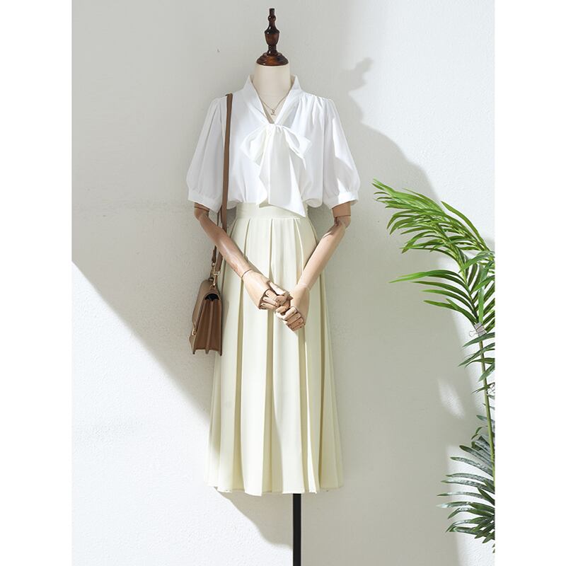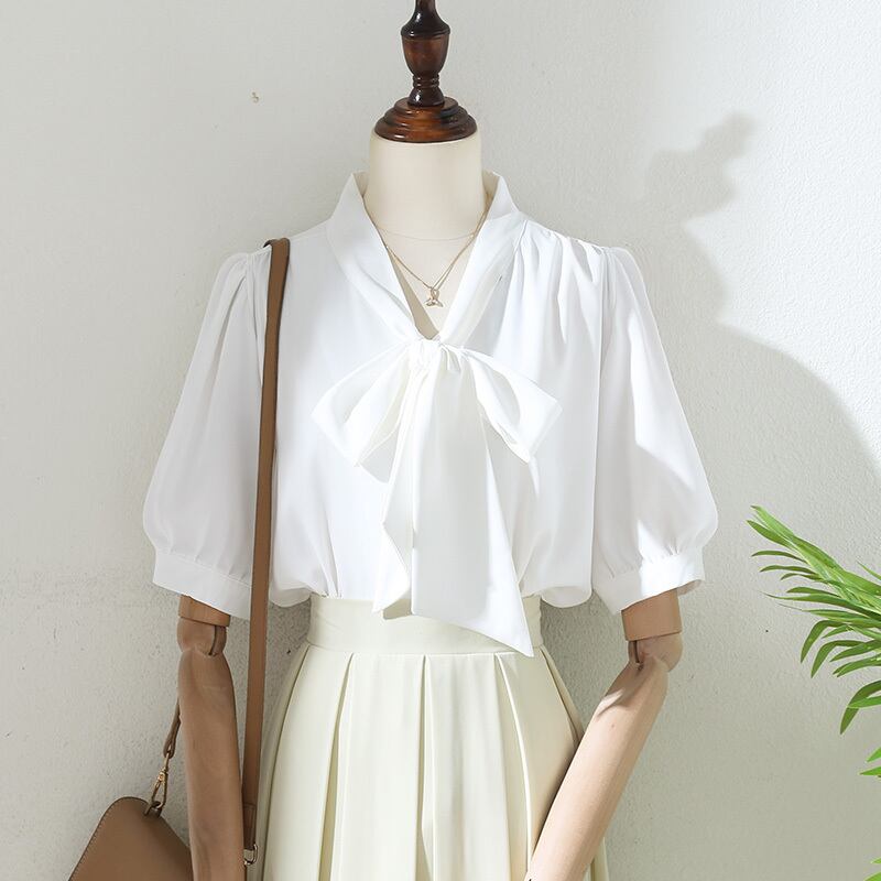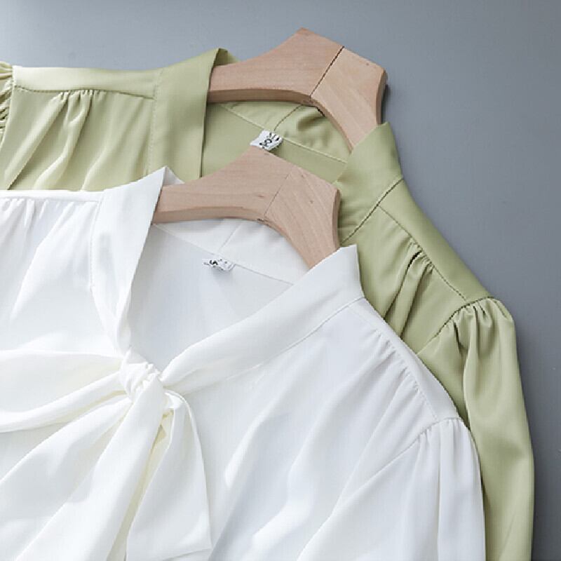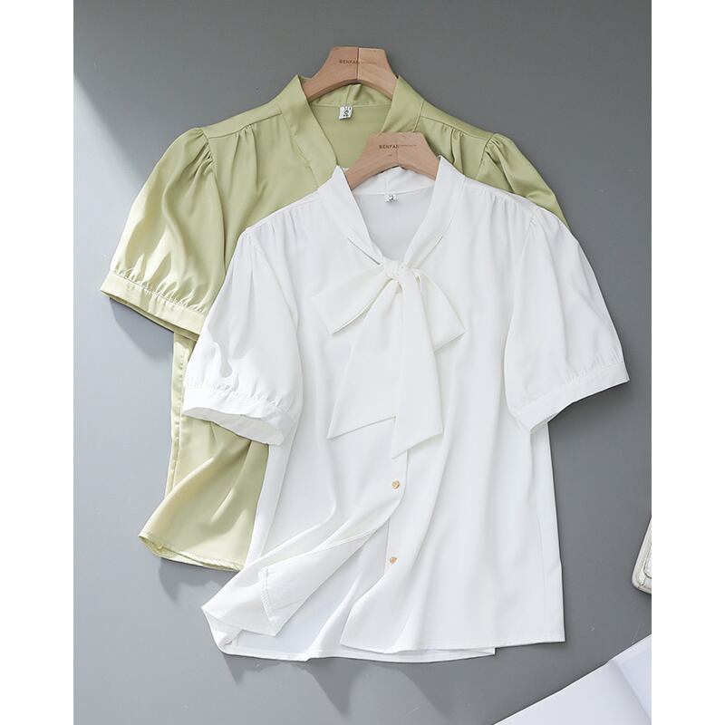 【清楚印象シリーズ】トップス シャツ 2色展開 パフスリーブ 通勤 ホワイト グリーン S M L XL