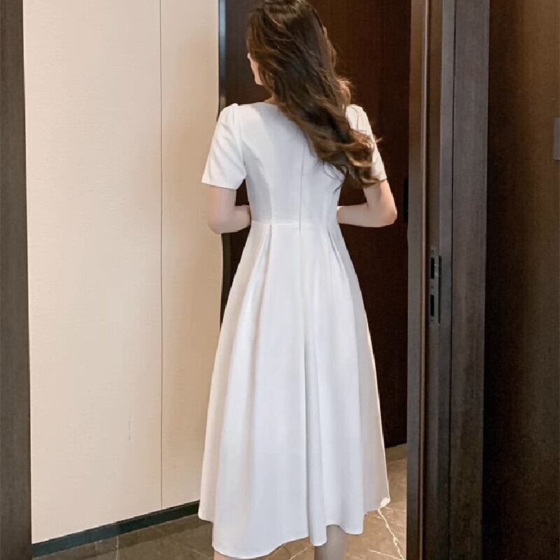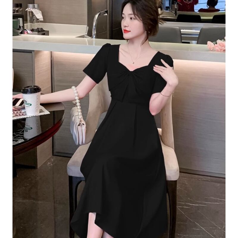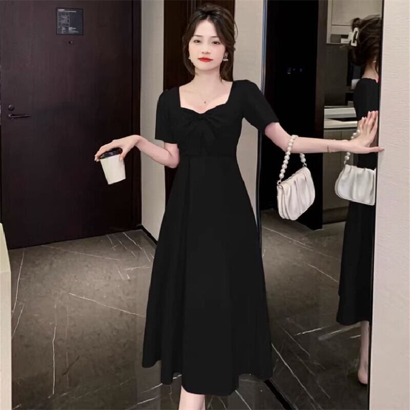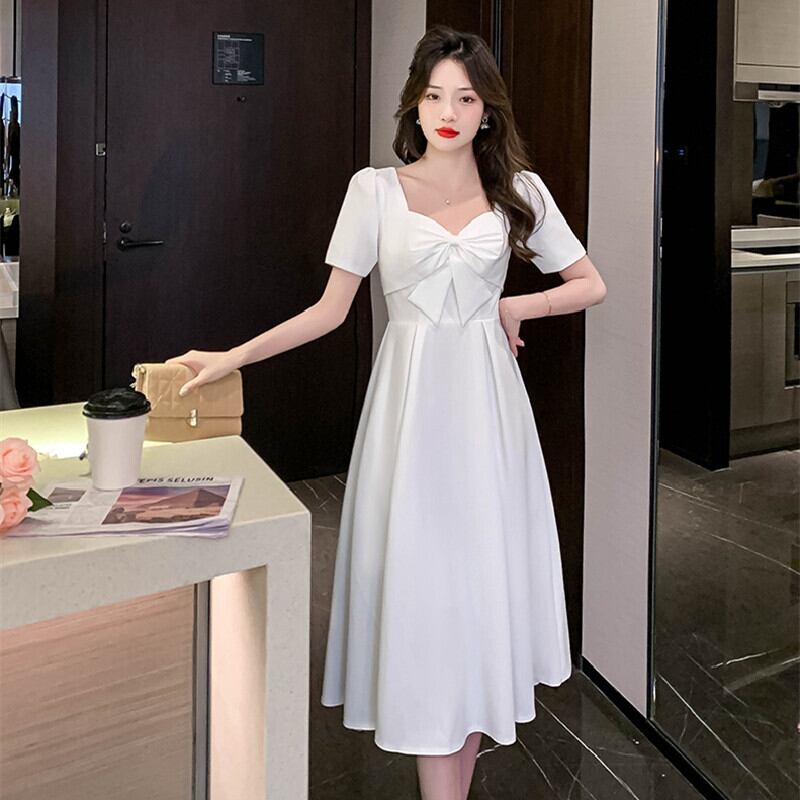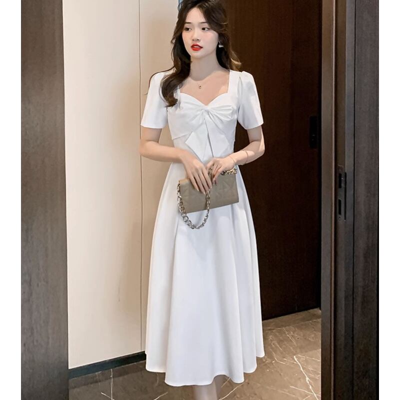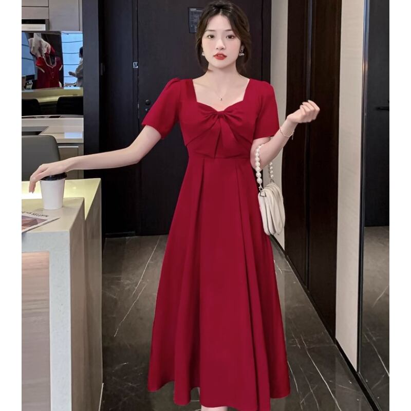 ワンピース 3色展開 スクエアネック パーティー 無地 ホワイト レッド ブラック S M L XL