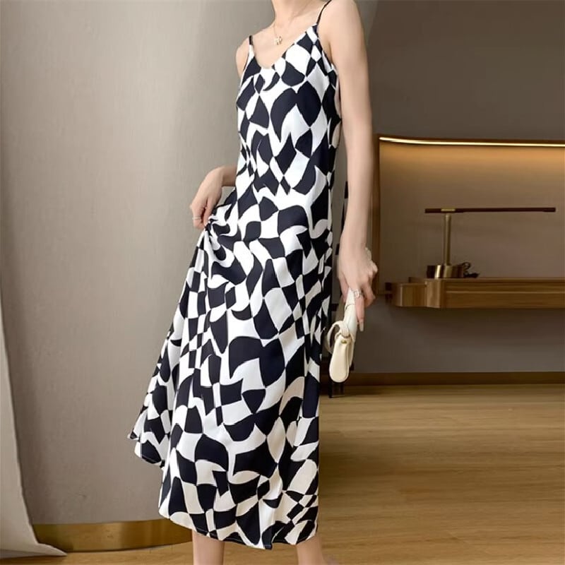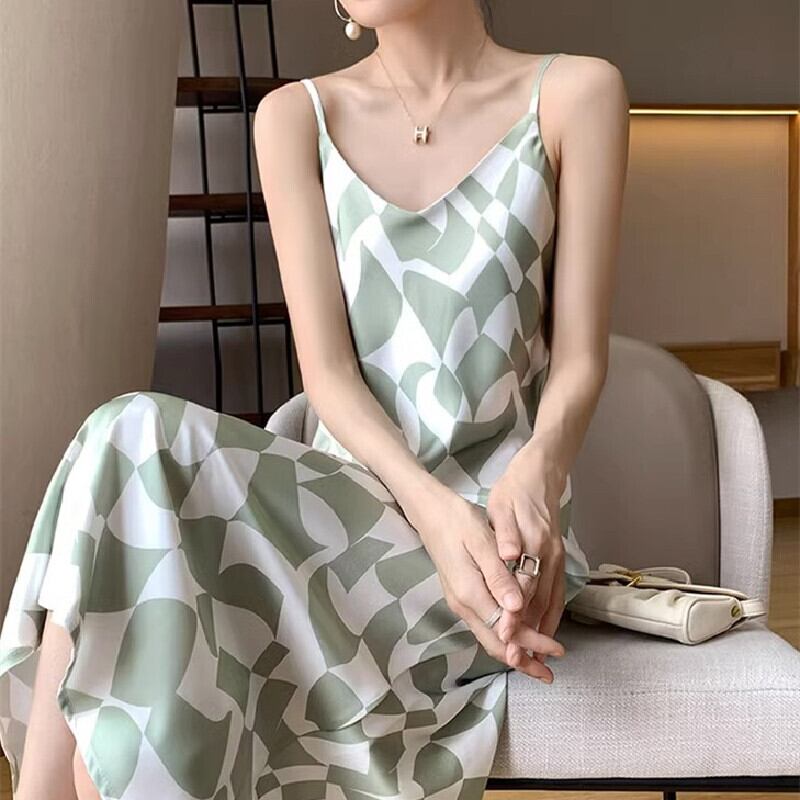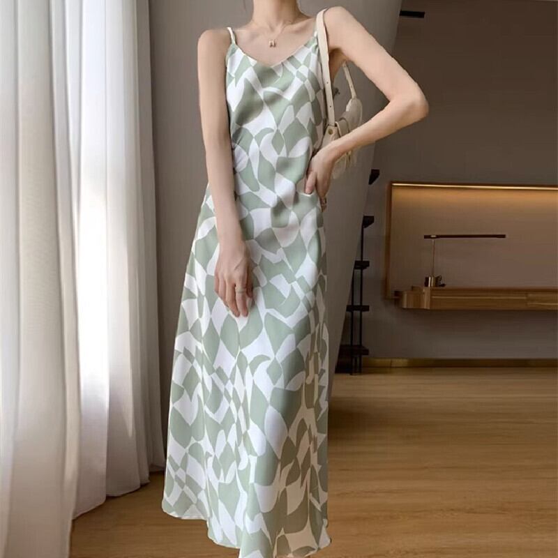 【紫陽花シリーズ】吊りワンピース 2色展開 幾何模様 大きいサイズ ブラック グリーン S M L XL 2XL