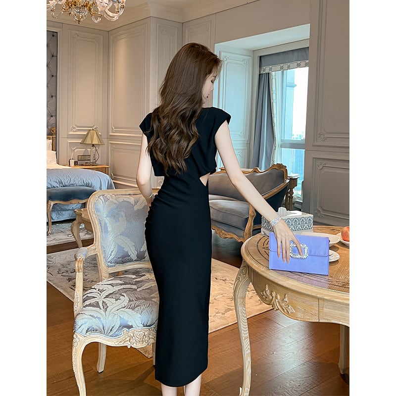 【夕暮薔薇シリーズ】ワンピース パーティーOL/通勤 シンプル 無地 デザイン感 ブラック ピンク S M L XL