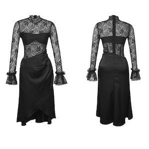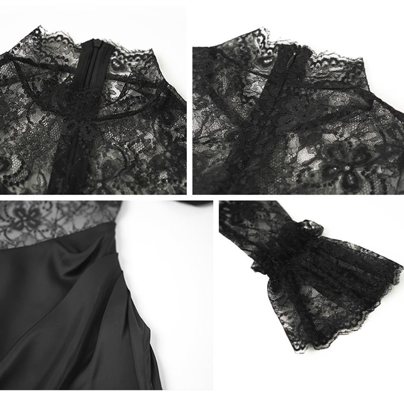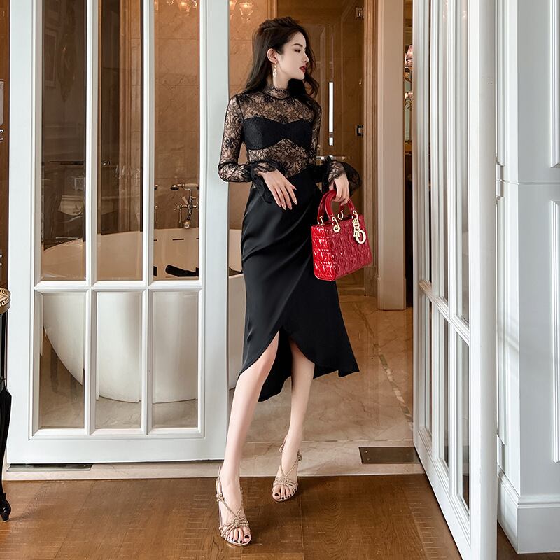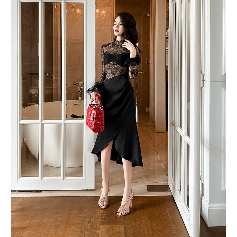 【夕暮薔薇シリーズ】ワンピース セクシー デザイン感 パーティー レース 透かし彫り ブラック S M L XL