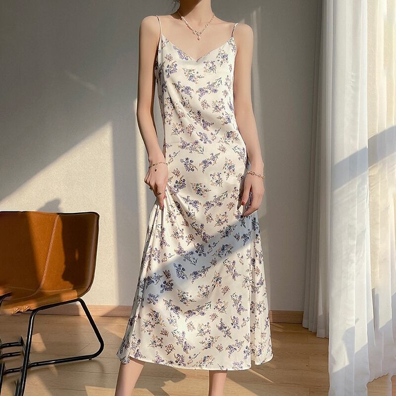【紫陽花シリーズ】吊りワンピース 大きいサイズ Vネック 花柄 S M L XL 2XL