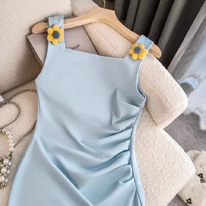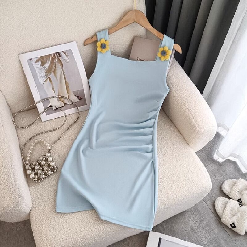 吊りワンピース 水色 可愛い ノースリーブ ミニ丈 Aライン ブルー S M L