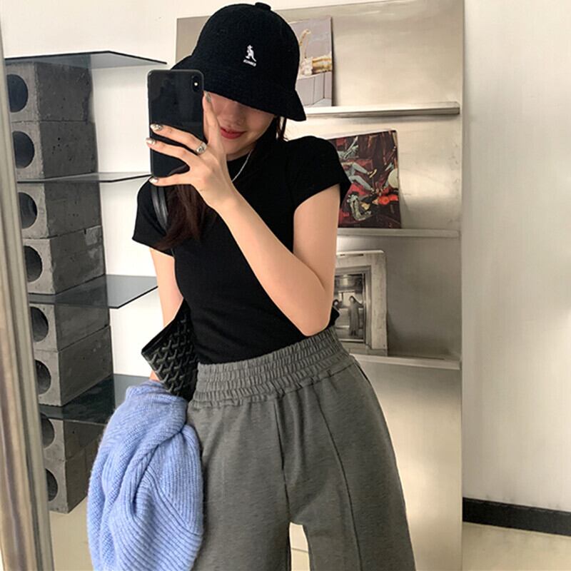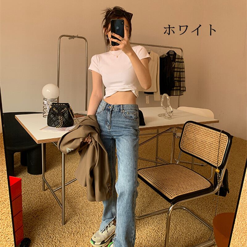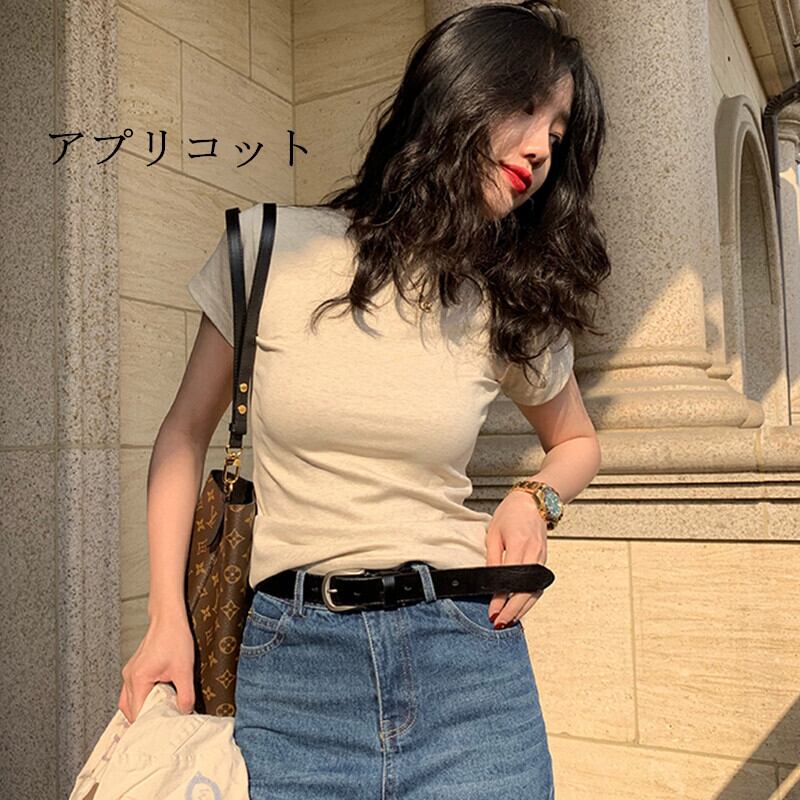トップス Tシャツ カジュアル 半袖 アプリコット ブラック ホワイト S M L XL