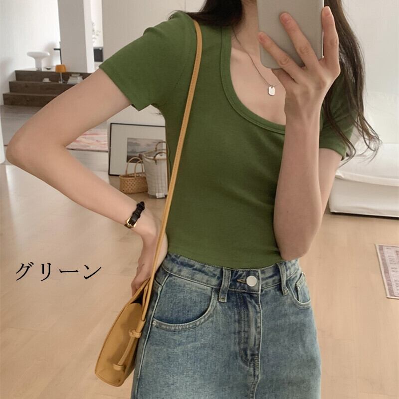 トップス Tシャツ カジュアル 半袖 ラウンドネック グリーン ブラック ホワイト ダークグレー ブルー アプリコット ライトグレー S M L XL