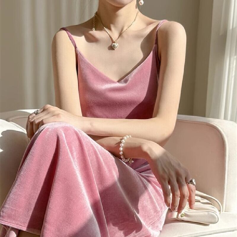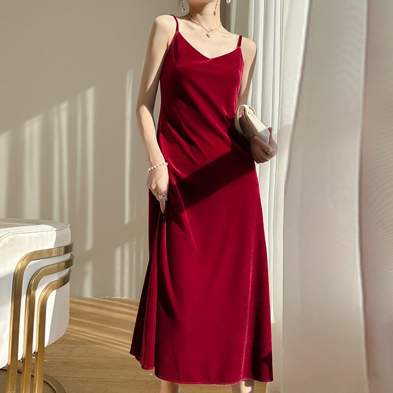 【紫陽花シリーズ】ロングワンピース 無地 ビロード 大きいサイズ レトロ ダークブルー レッド ピンク ブラック S M L XL 2XL