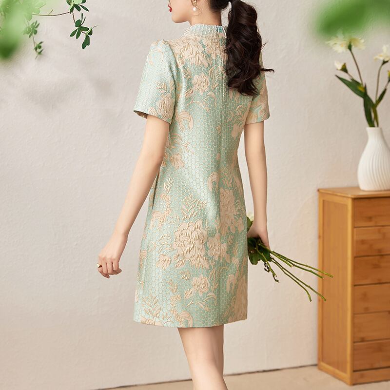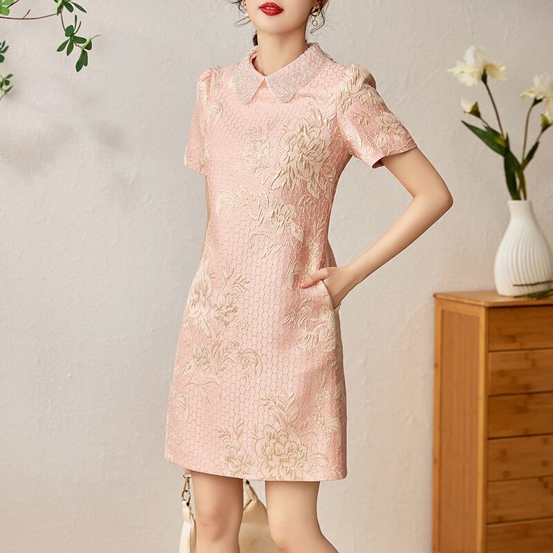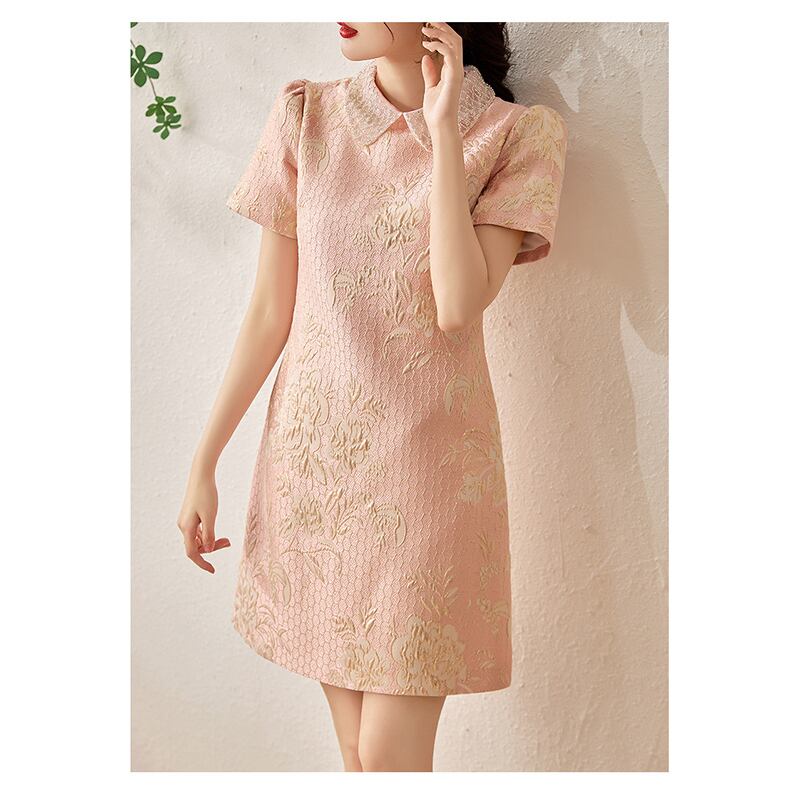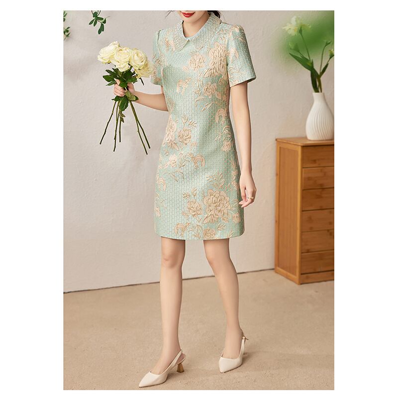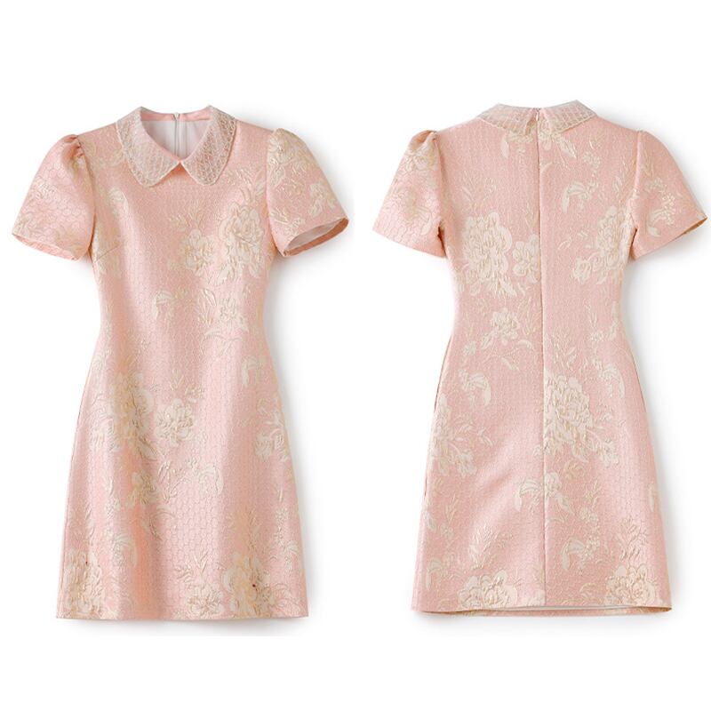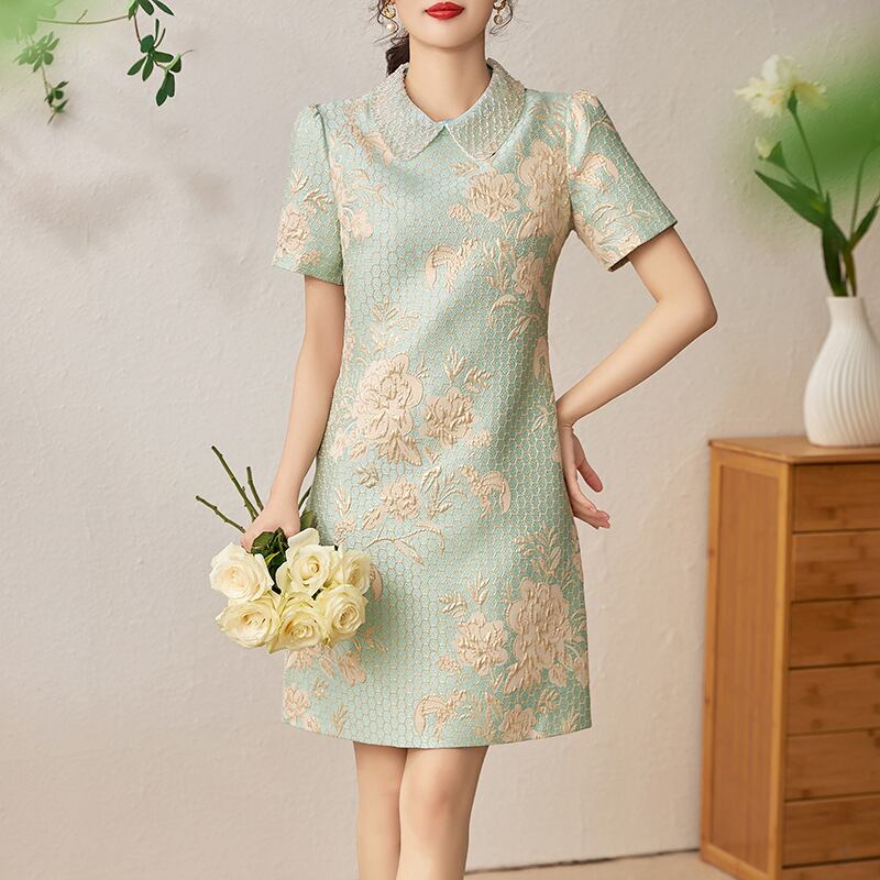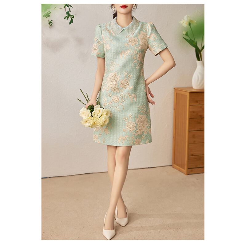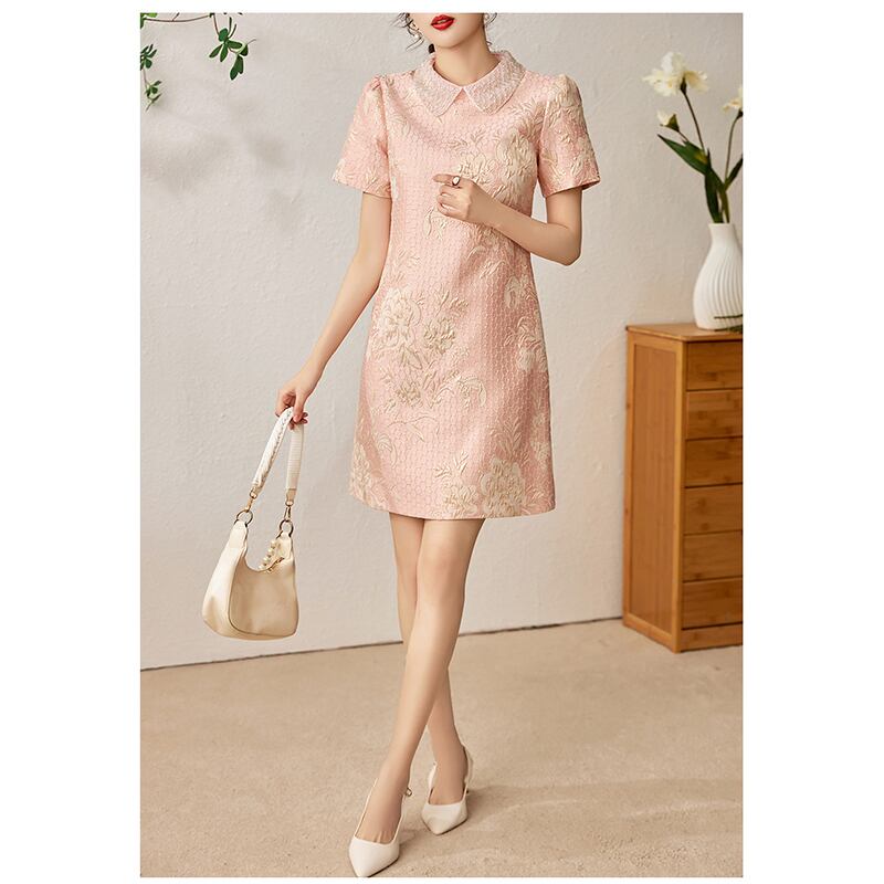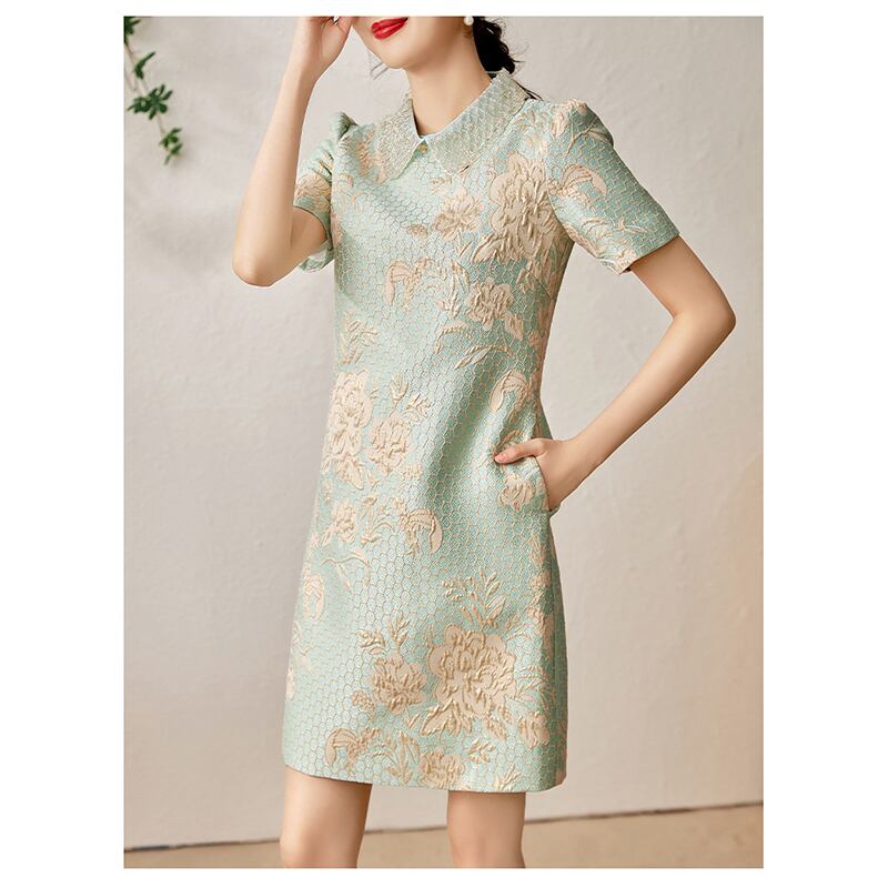【Blue City シリーズ】ワンピース レトロ エレガント Aライン 刺繍 ピンク グリーン 大きいサイズ S M L XL 2XL