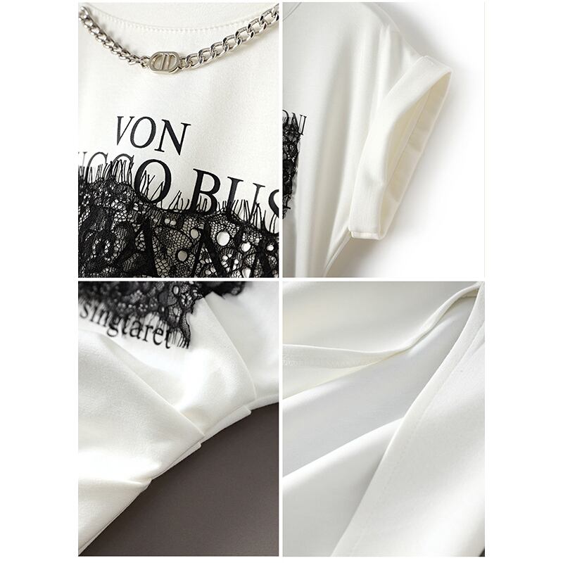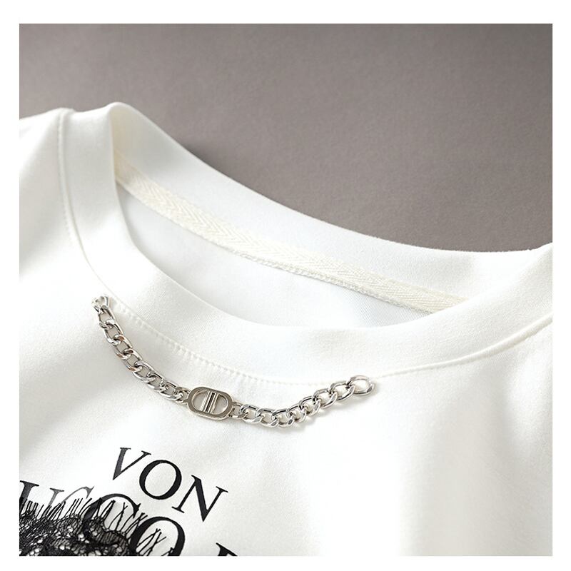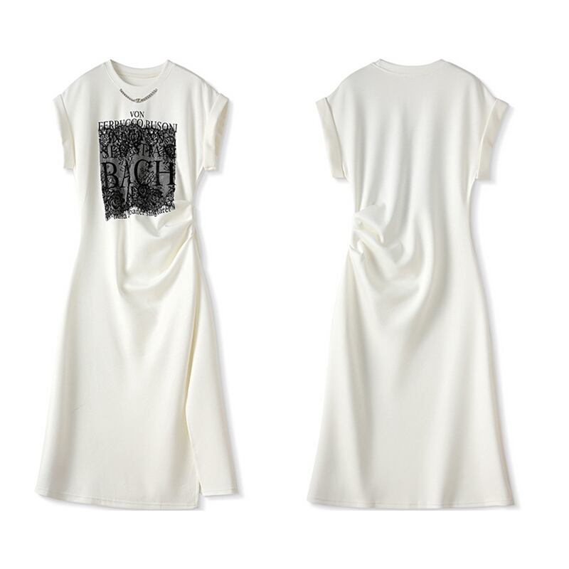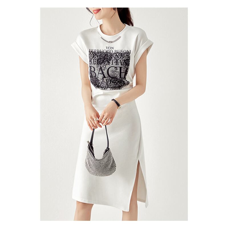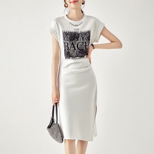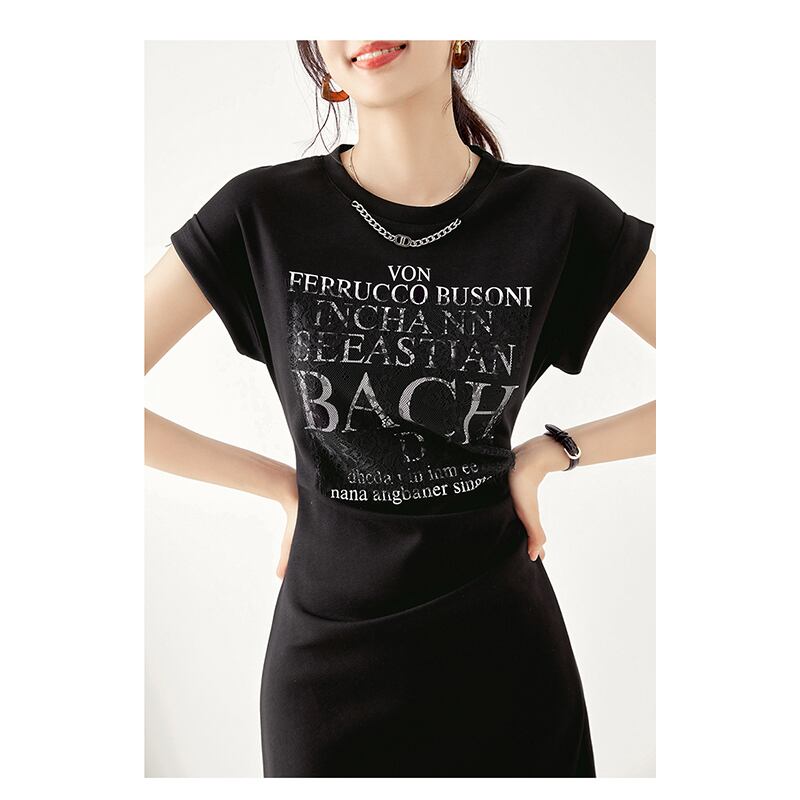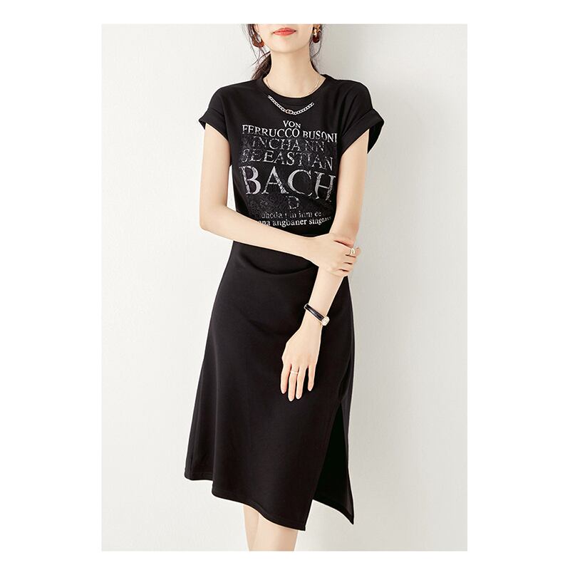 【Blue City シリーズ】ワンピース カジュアル OL/通勤 アルファベット チェーン ブラック ホワイト S M L