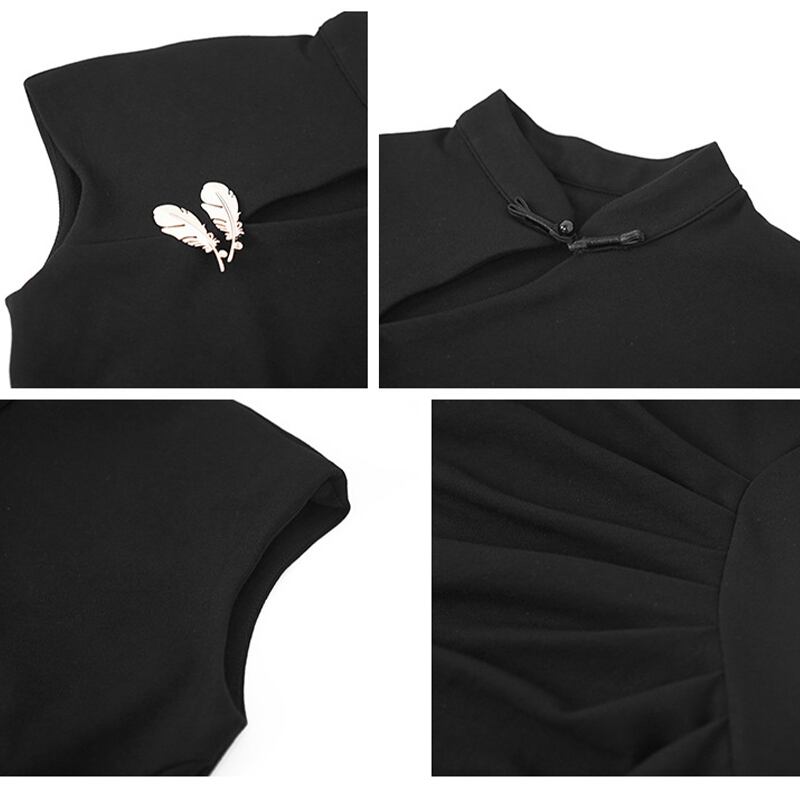 【夕暮薔薇シリーズ】ワンピース 人気新作 セクシー チャイナ風 サイドスリット ブラック S M L XL