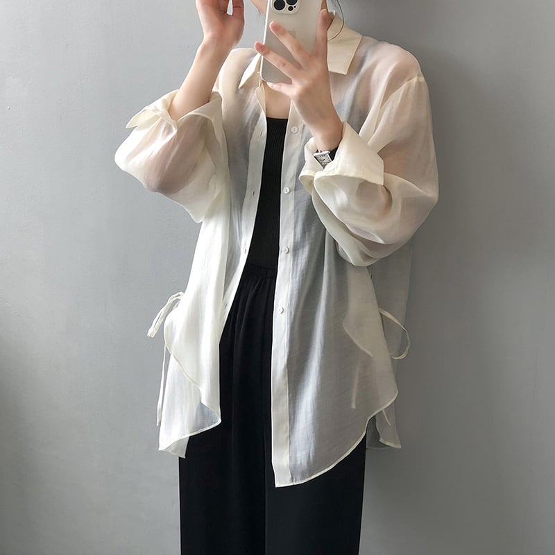 トップス 薄いシャツ 5色展開 日差し防止 薄手 無地 ピンク ホワイト グリーン ブルー イエロー M L