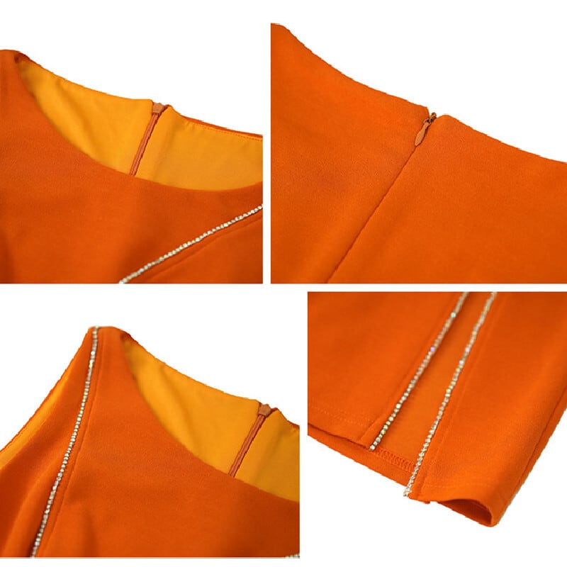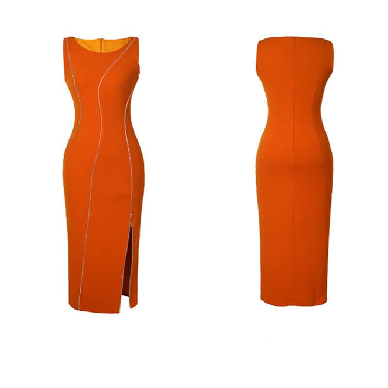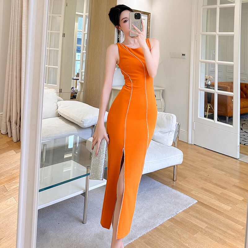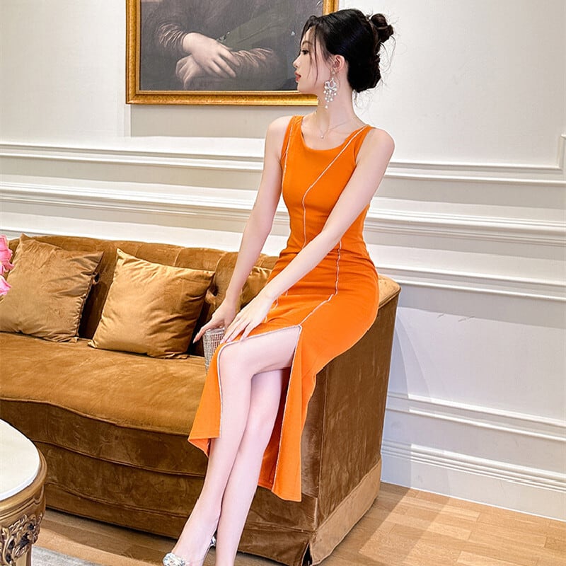 【夕暮薔薇シリーズ】ワンピース ラウンドネック 宴会 スリット パーティー オレンジ S M L XL