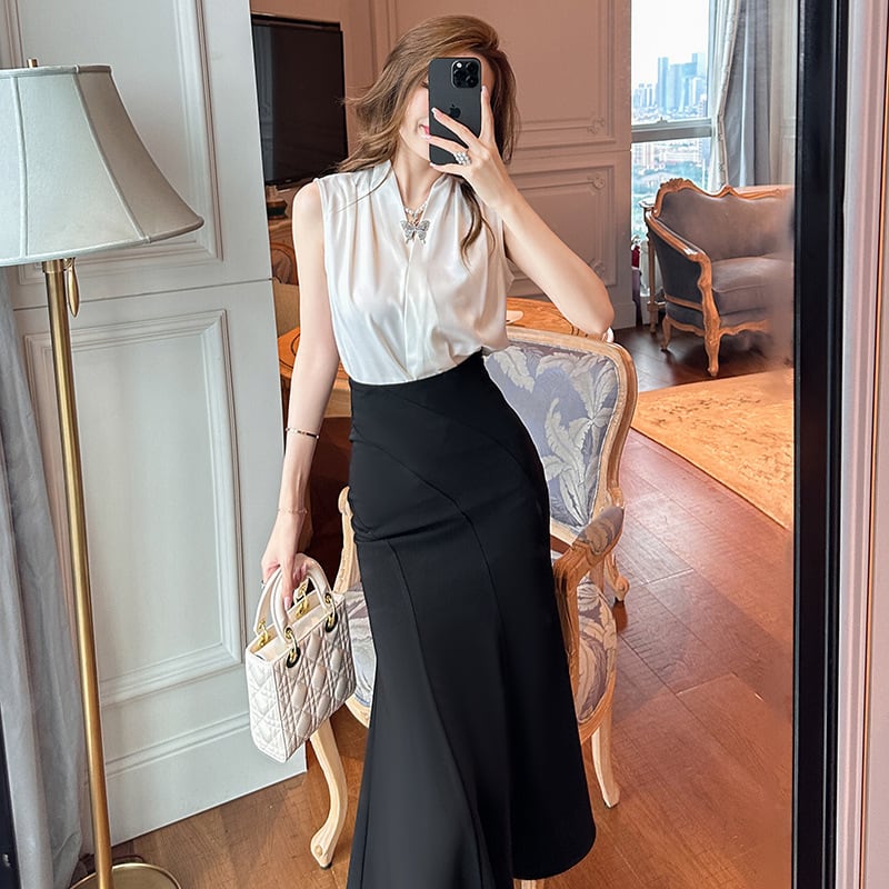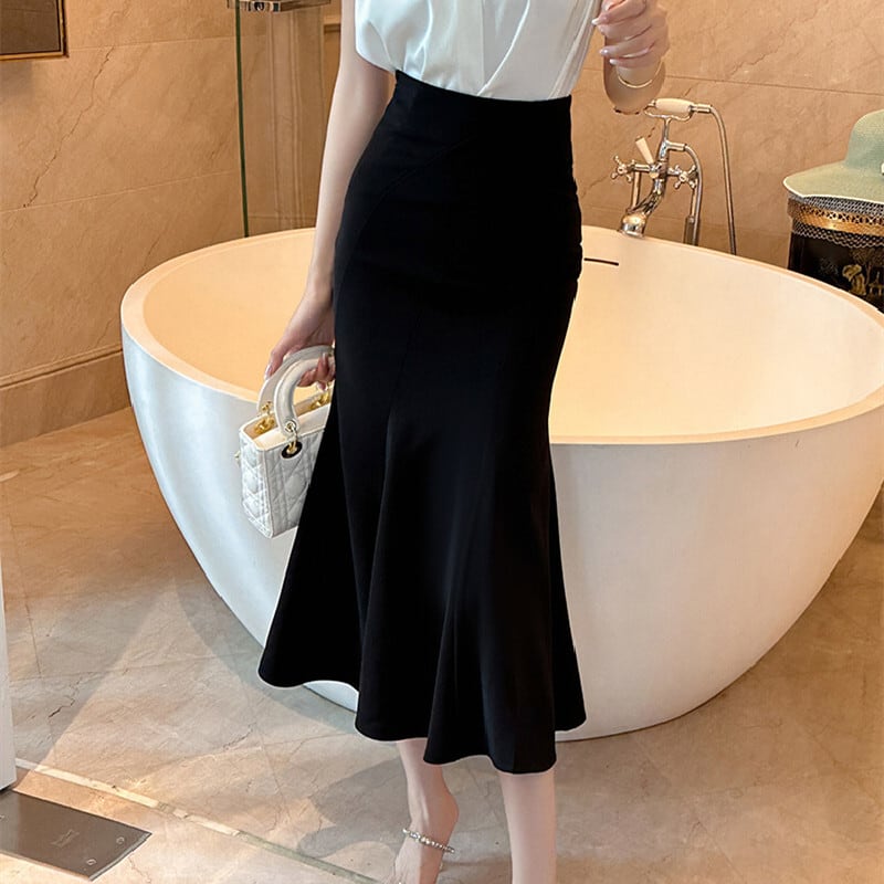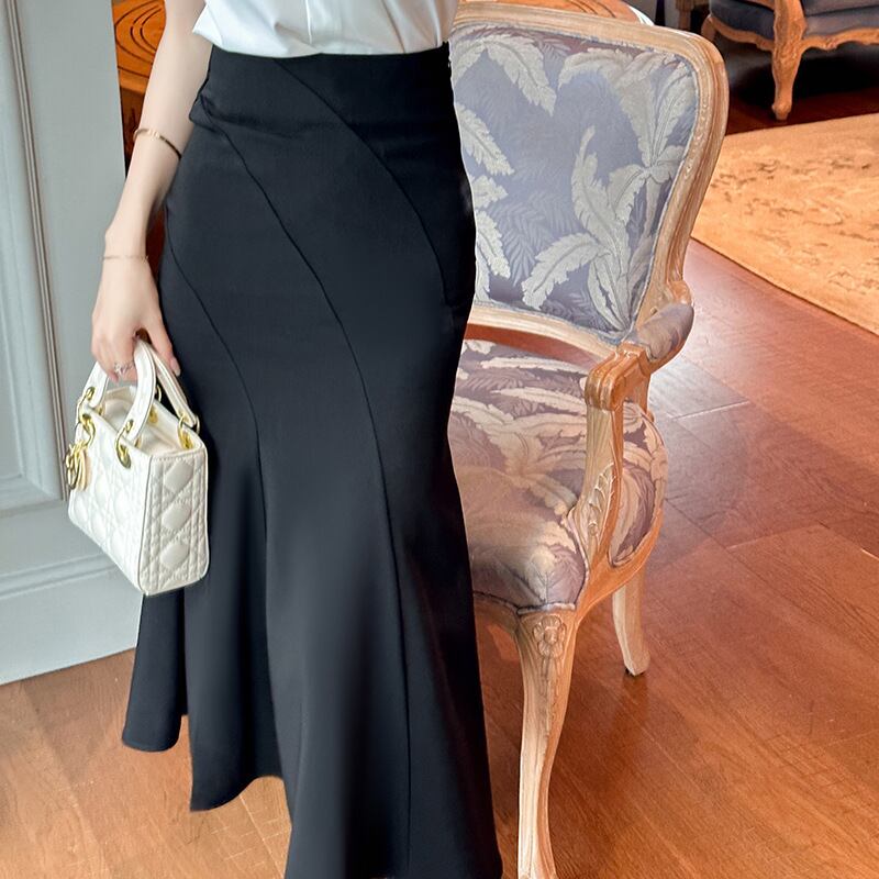 【夕暮薔薇シリーズ】ボトムス スカート 黒 ハイウエスト マーメイドスカート ブラック S M L XL