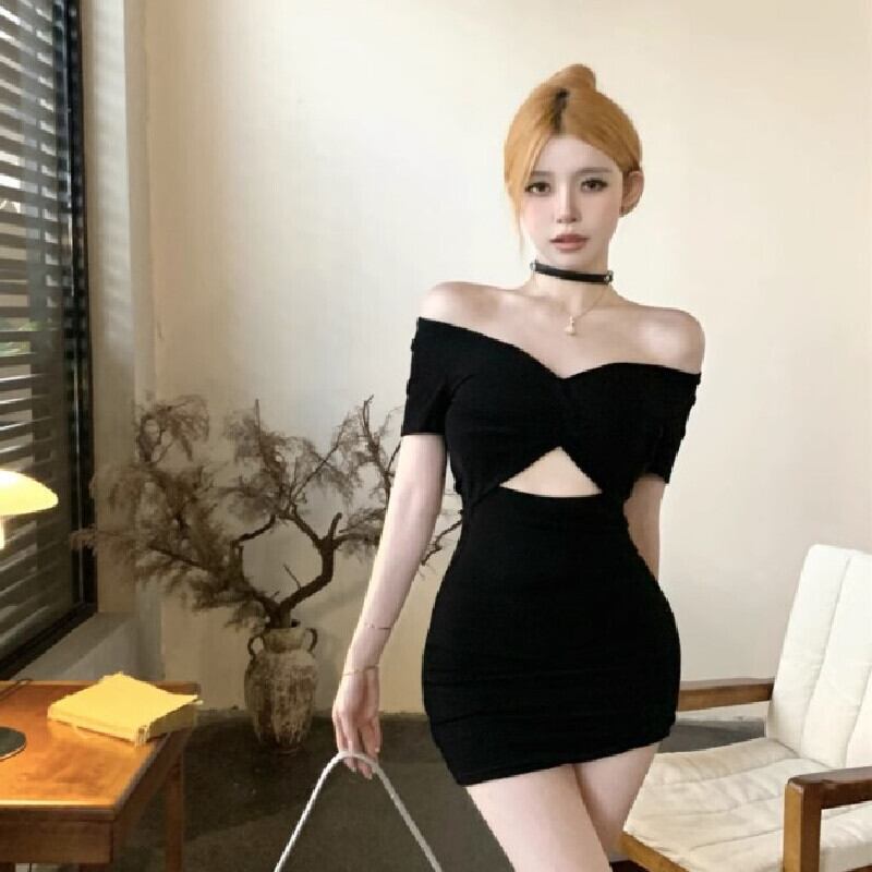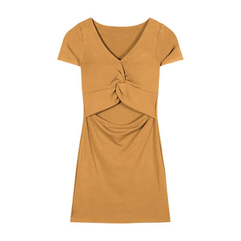ワンピース 無地 セクシー 5色展開 Vネック ミニ丈 イエロー グレー ブラック ダークピンク ライトブラウン