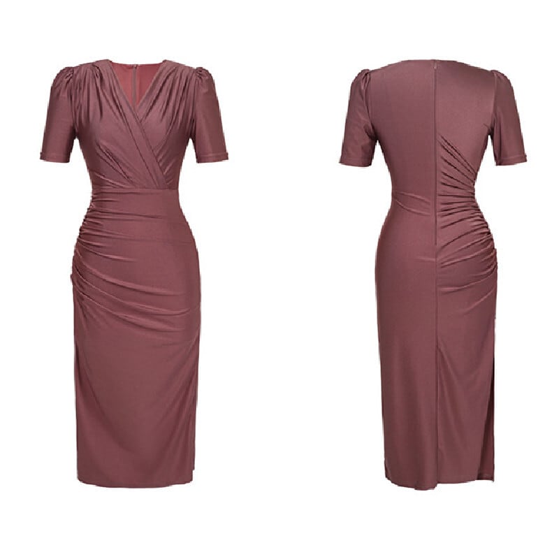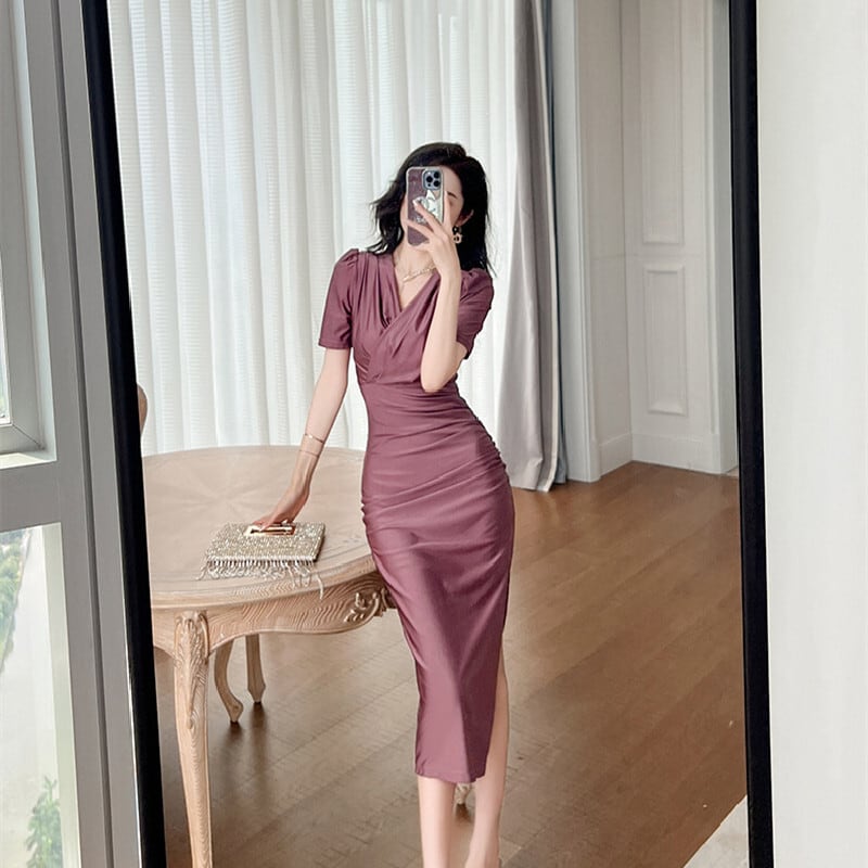 【夕暮薔薇シリーズ】ワンピース 無地 フェミニン 気質 着痩せ パープル S M L XL