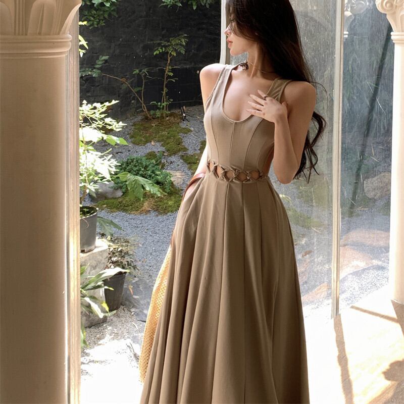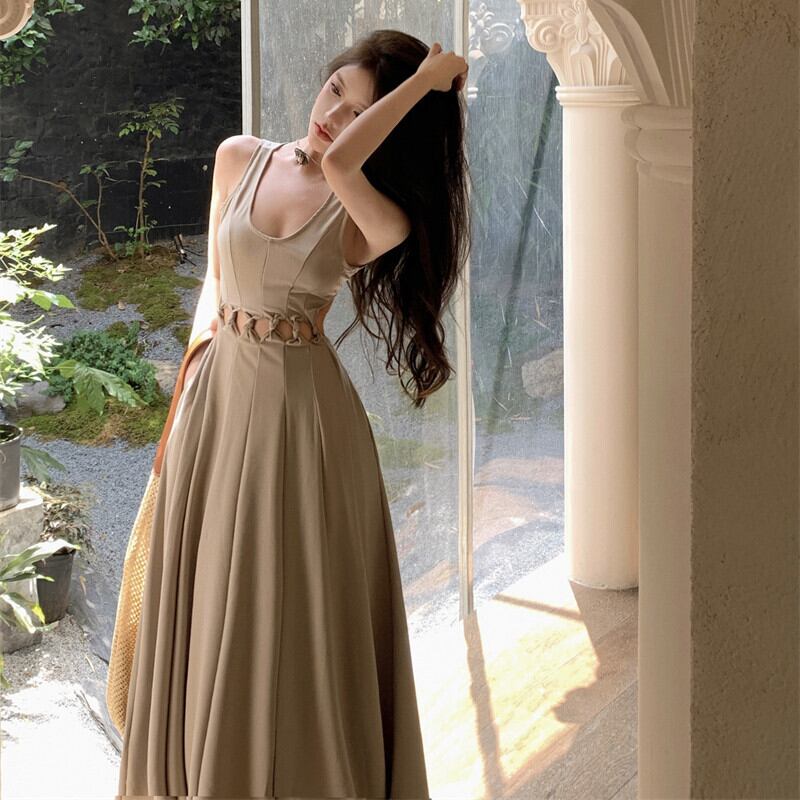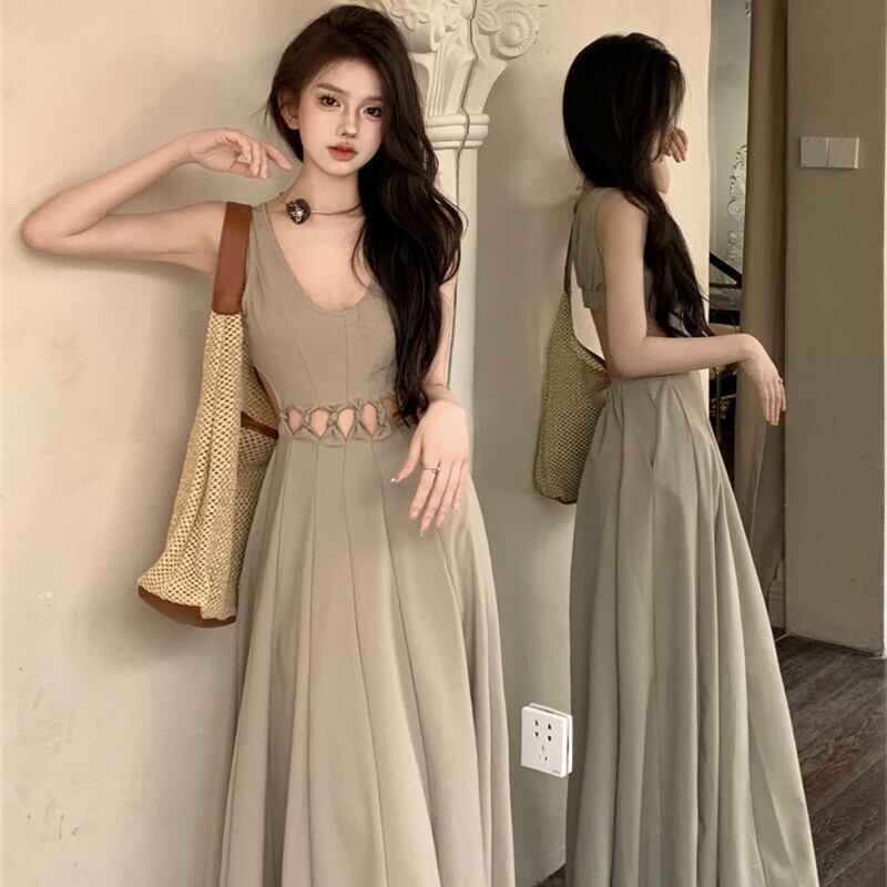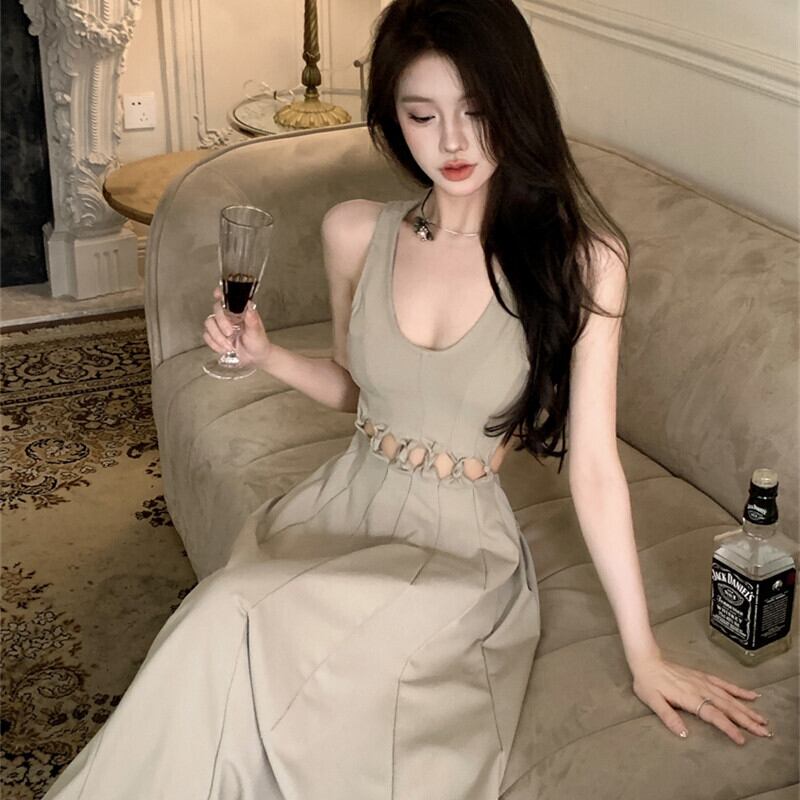 ワンピース セクシー 透かし彫り ノースリーブ 細見せ ロング丈 S M L