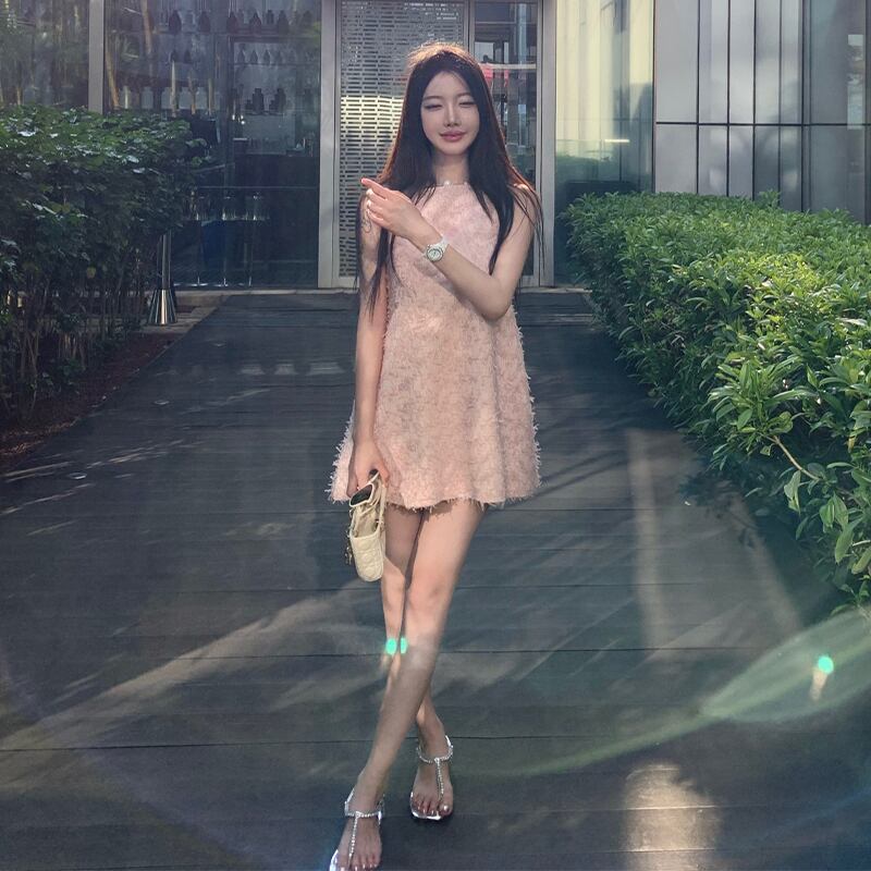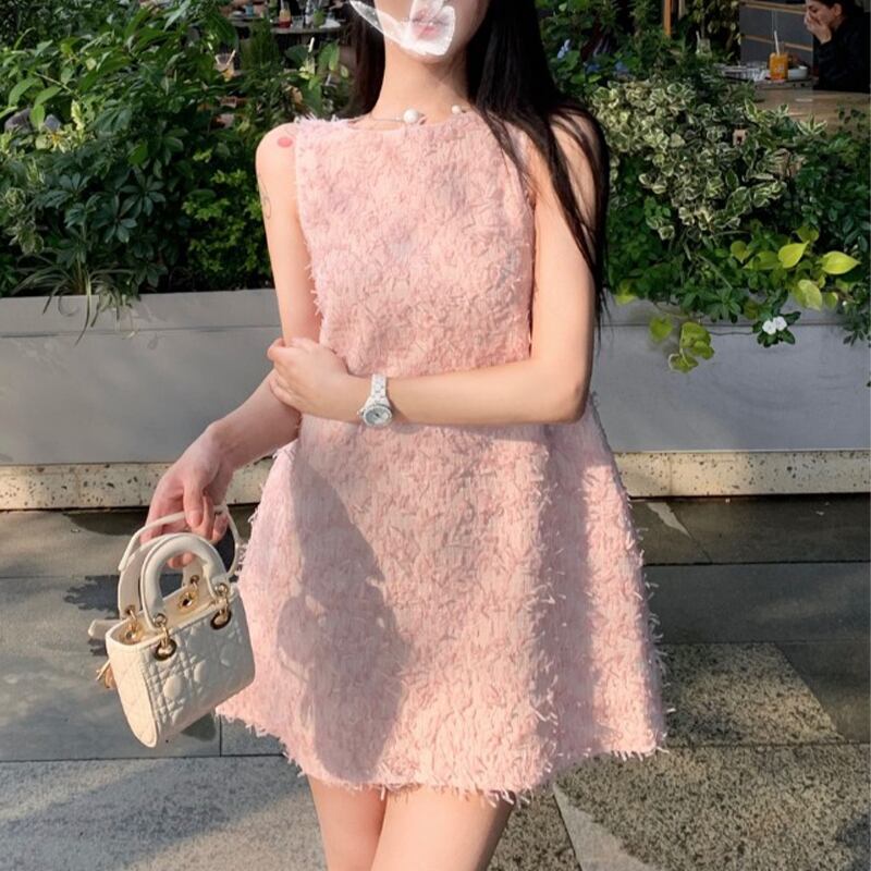 ワンピース OL/通勤 かわいい Aライン ノースリーブ ピンク S M