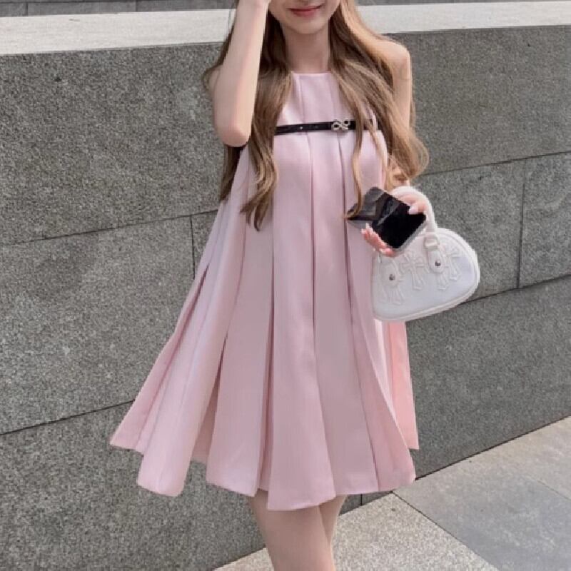 ワンピース スウィート Aライン ラウンドネック 若見え爽やかなスタイル ピンク S M