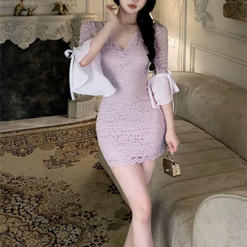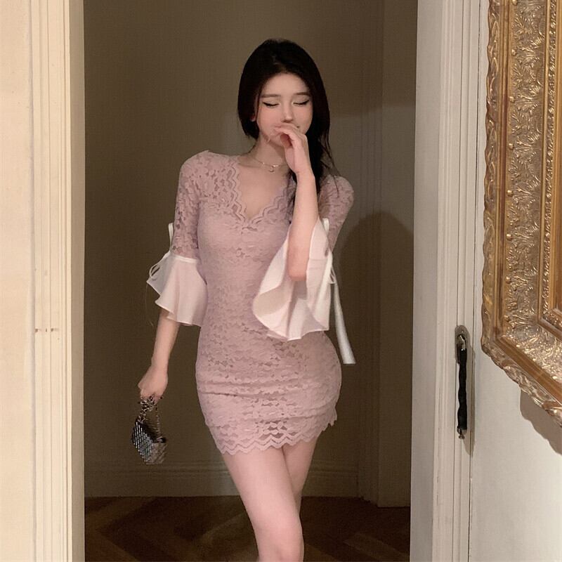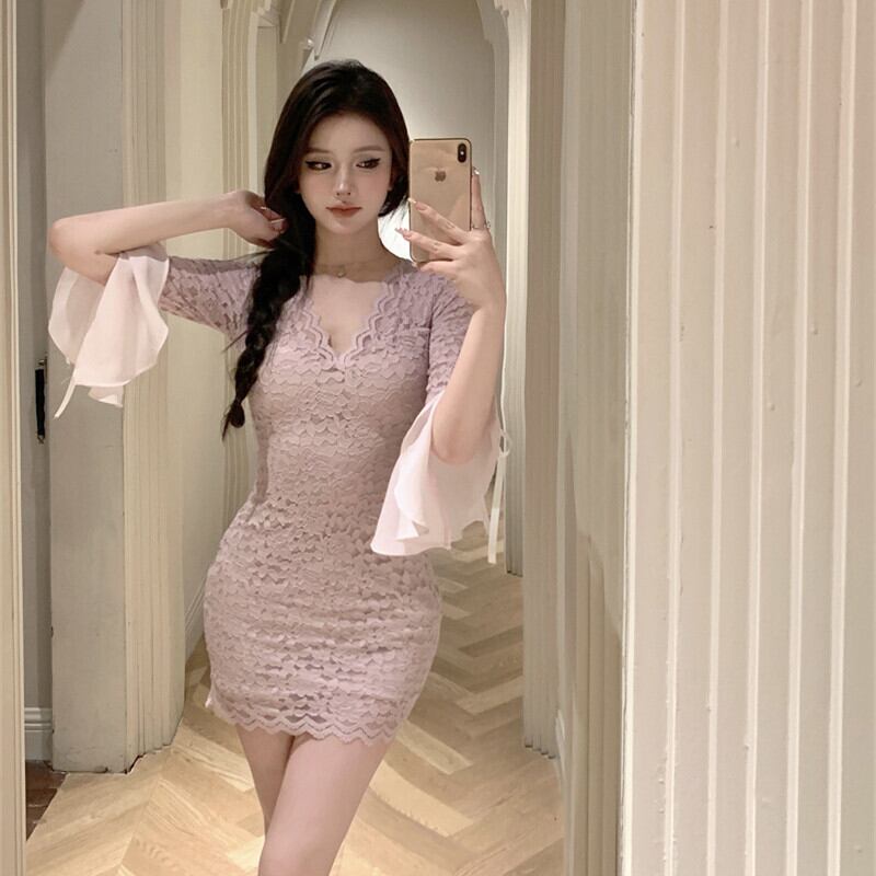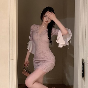 ワンピース レース セクシー Vネックデザイン スピーカースリーブ S M L