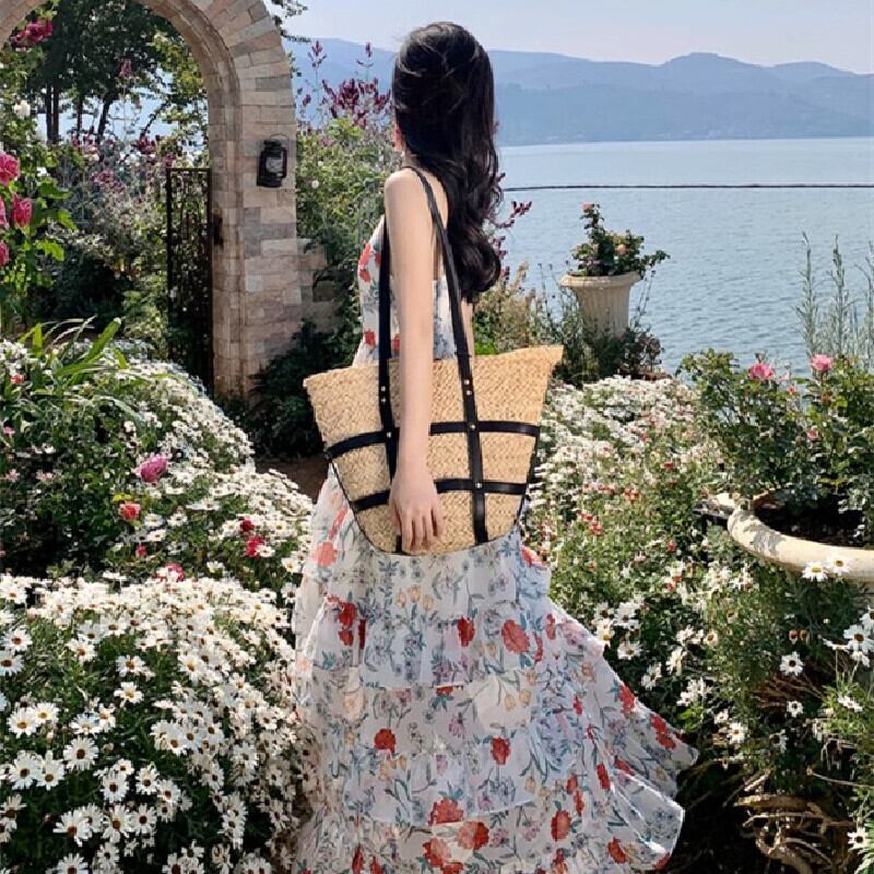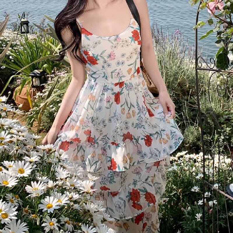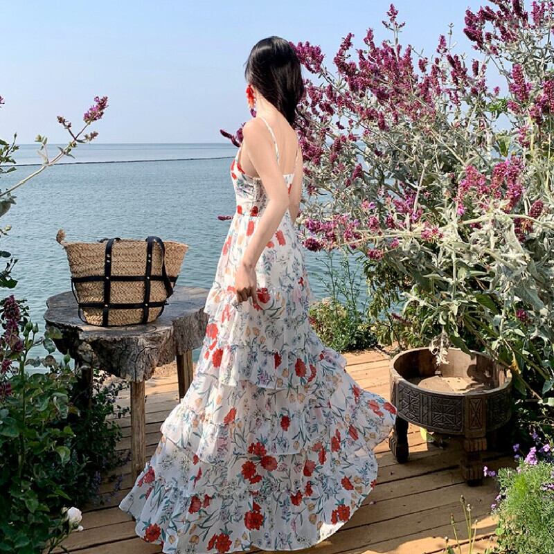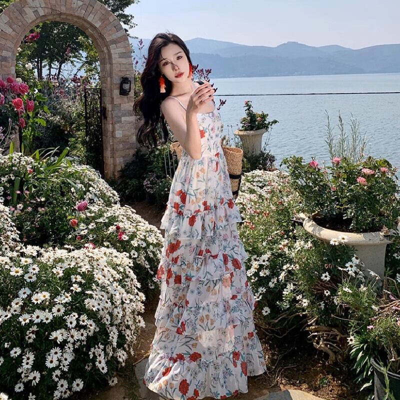 【SummerVacationシリーズ】ロングワンピース 花柄 ビーチ 撮影着 バカンス エレガント S M L XL