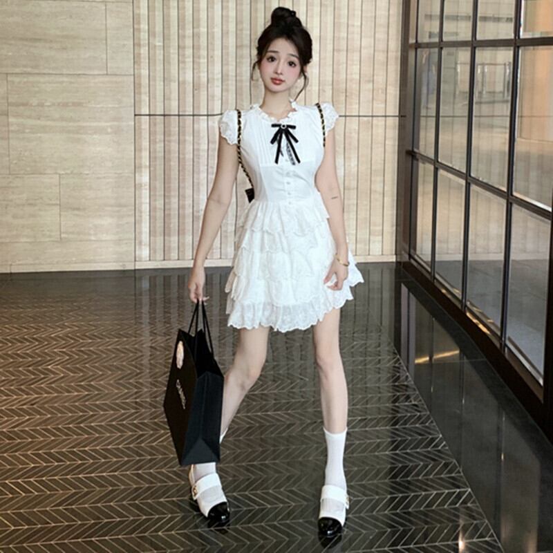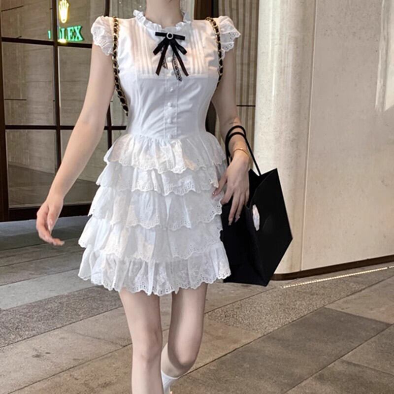 ワンピース 可愛い スウィート 綺麗め 一目惚れ ペプラム ホワイト S M L