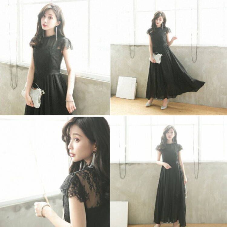 ✿店長おすすめ✿ パーティードレス レース 3色展開 大きいサイズ 宴会 エレガント パープル ブラック ホワイト S M L XL 2XL