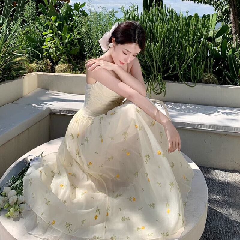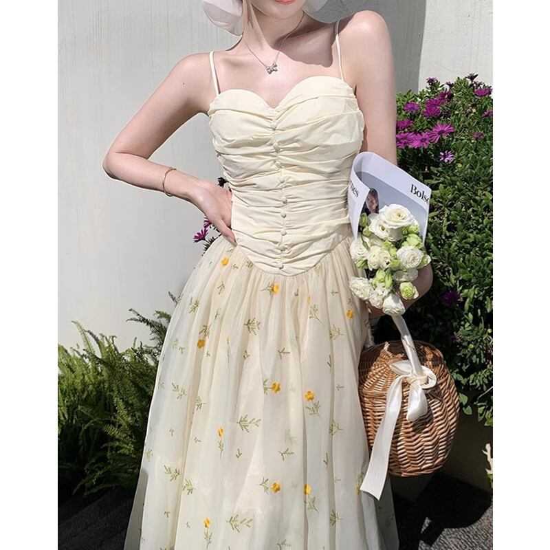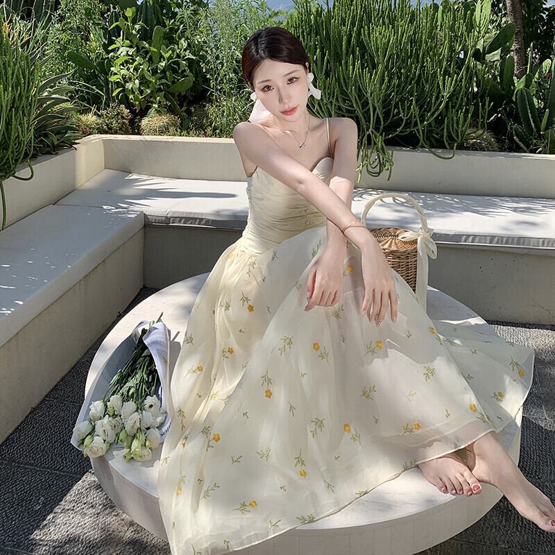 【SummerVacationシリーズ】吊りワンピース 花柄 撮影着 スウィート ベージュ S M L