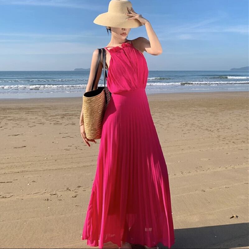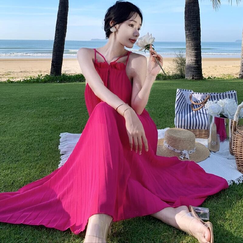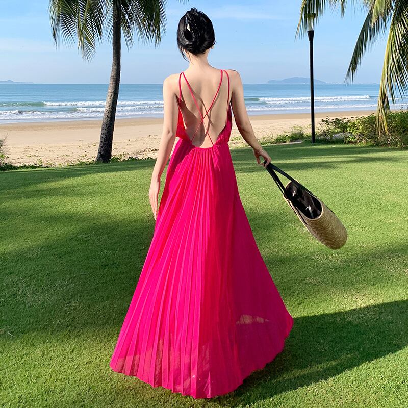 【SummerVacationシリーズ】ワンピース バックオープン パーティー ローズ色 S M L XL