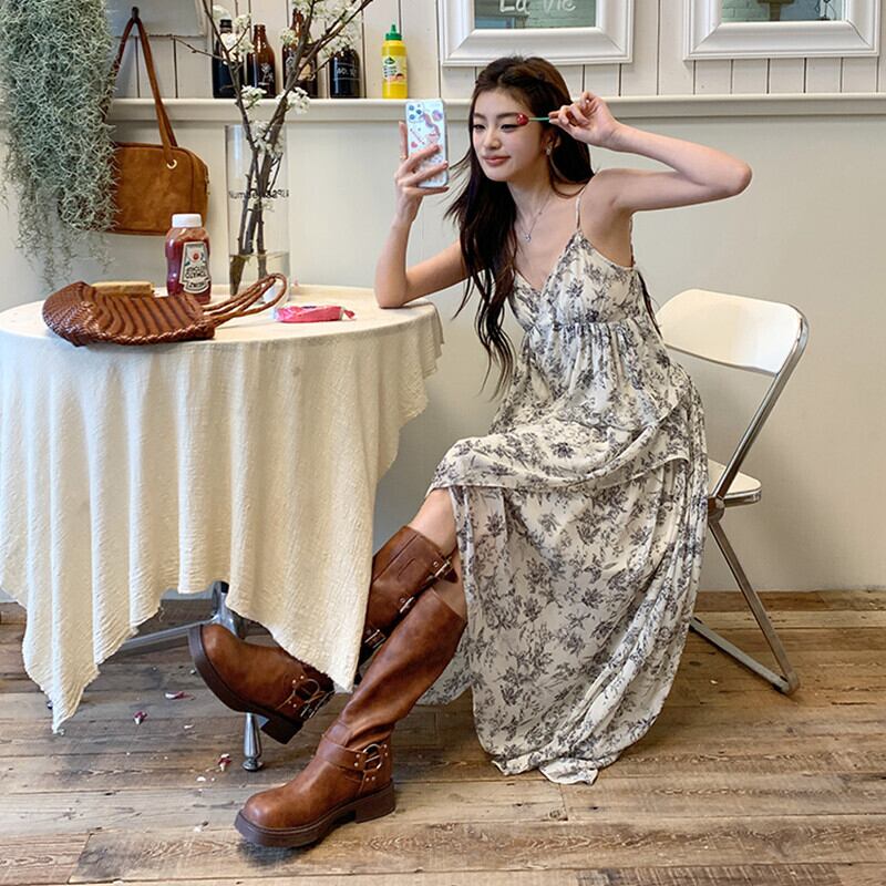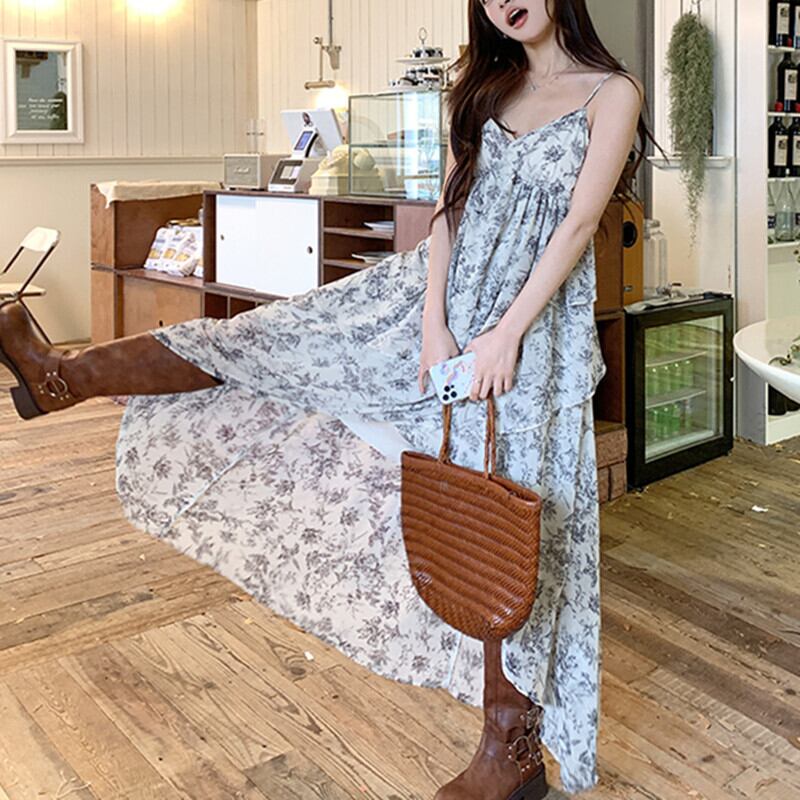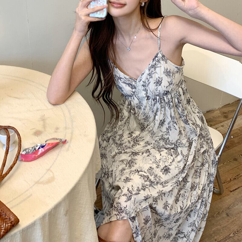 ワンピース 花柄 美人度アップ セクシー Vネック シフォン おしゃれ S M L