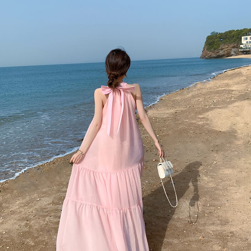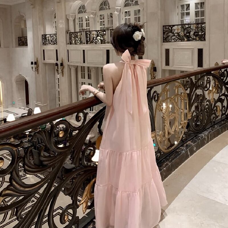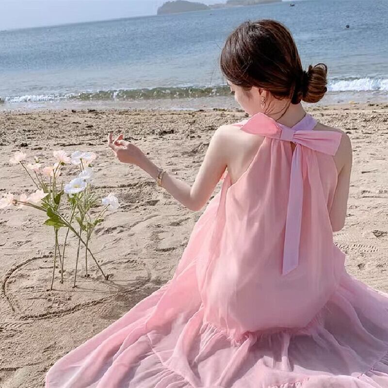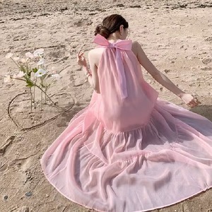 【SummerVacationシリーズ】ワンピース ノースリーブ スウィート デート 無地 ピンク S M L