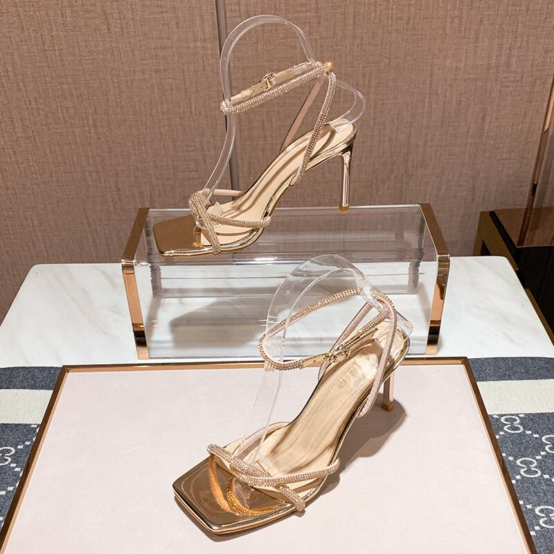 シューズ サンダル 3色展開 ラインストーン シルバー色 ゴールデン色 ブラック 8CM
