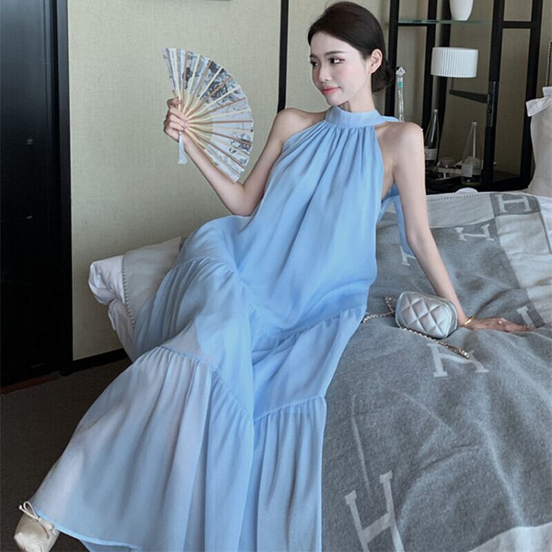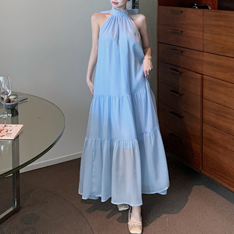 ワンピース シフォン セクシー 着まわし抜群 おしゃれ 魅せられる ブルー