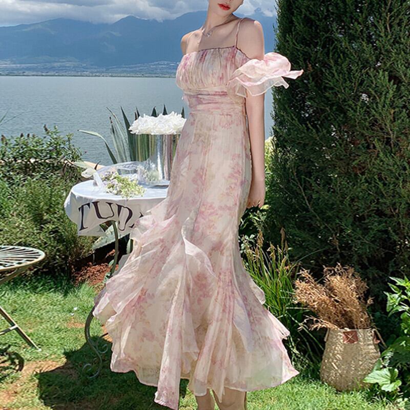 ワンピース セクシー 美人度アップ エレガント ペプラム 花柄 S M L