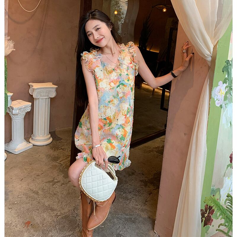 ワンピース おしゃれ かわいい Aライン 花柄 ノースリーブ S M L