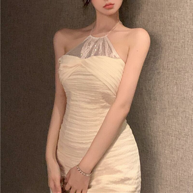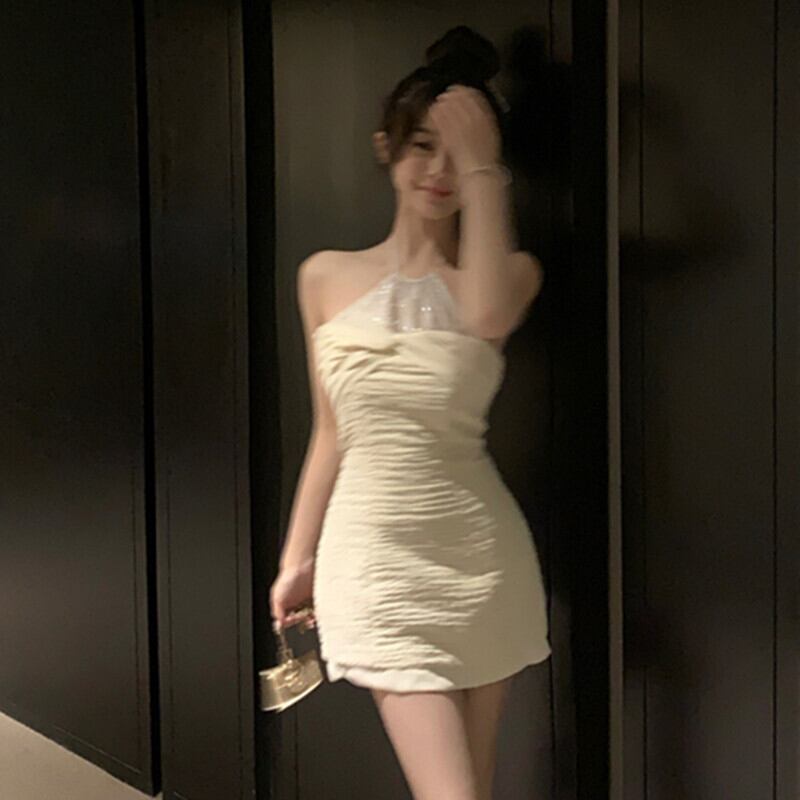 ワンピース セクシー 好感度UP ラインストーン 綺麗め アプリコット S M