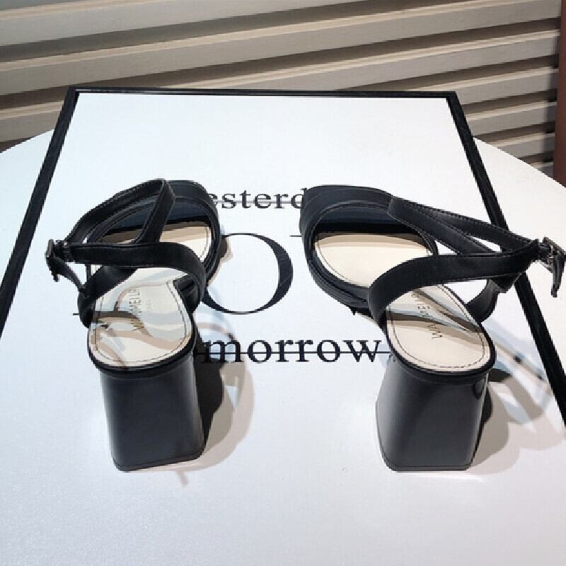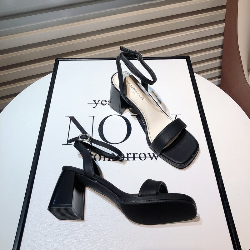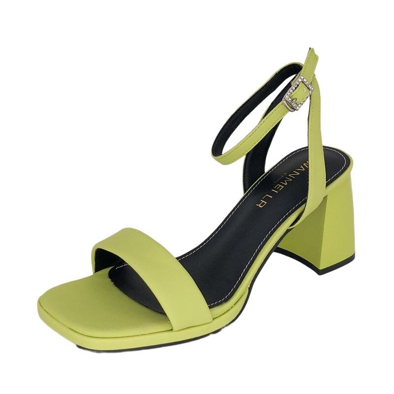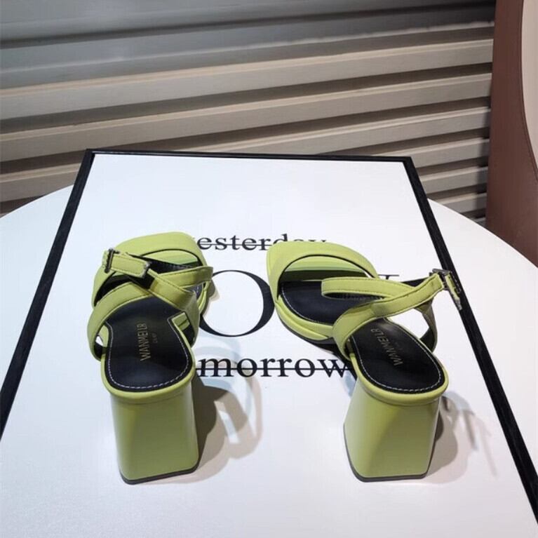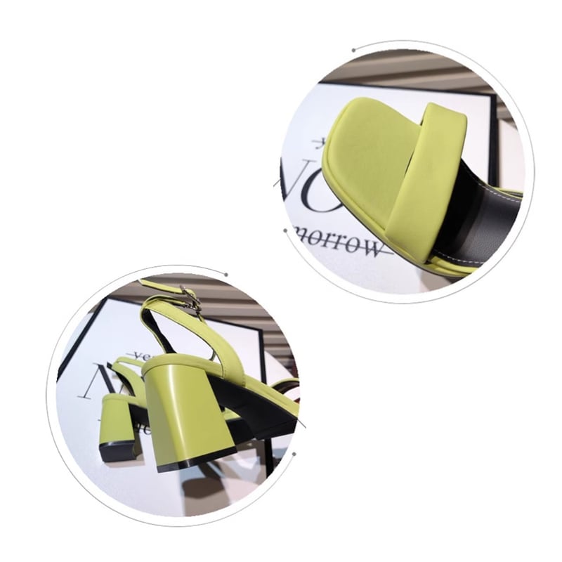 シューズ サンダル 3色展開 チャンキーヒール ファッション グリーン ベージュ ブラック 7CM