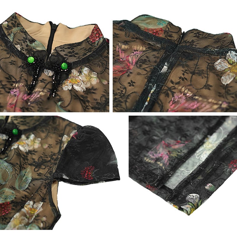 【夕暮薔薇シリーズ】ワンピース レトロ チャイナ風 レース セクシー パプラム ブラック S M L XL