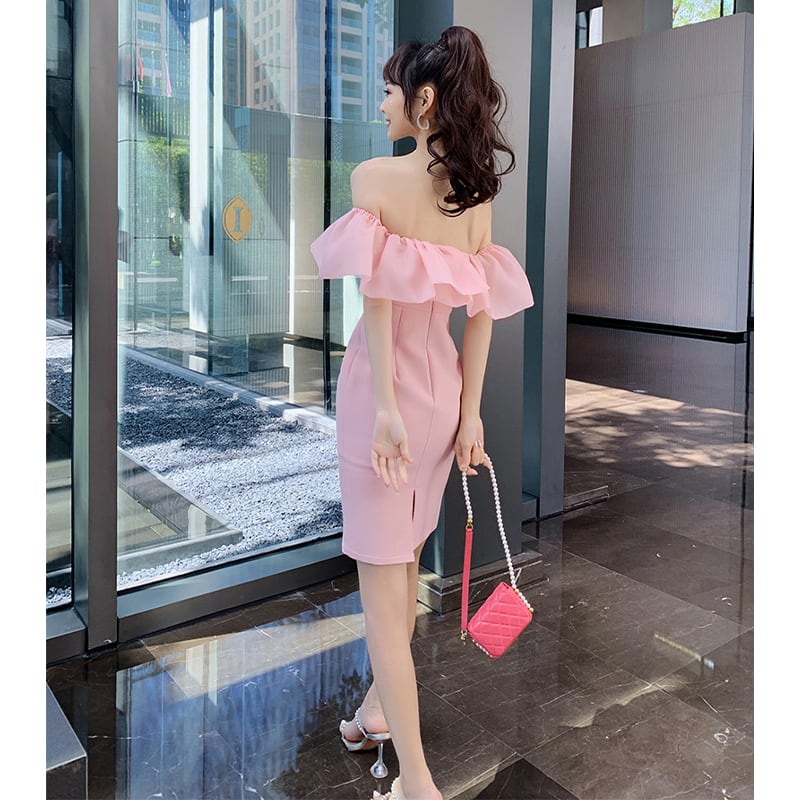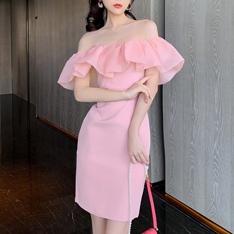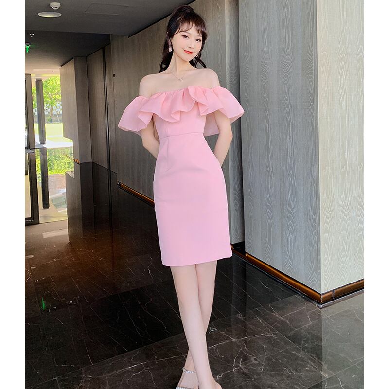 【夕暮薔薇シリーズ】ワンピース スウィート パーティー ボートネック ピンク S M L