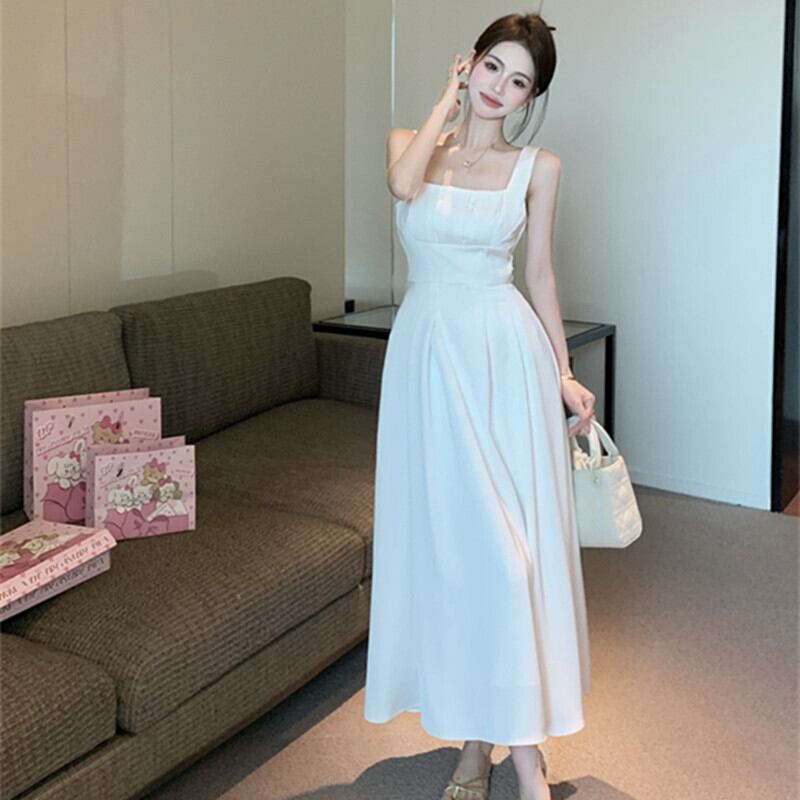 ワンピース セクシー スクエアネック ノースリーブ 気質満点 ホワイト S M