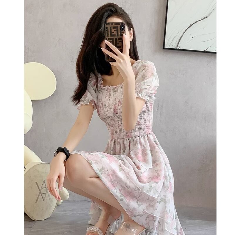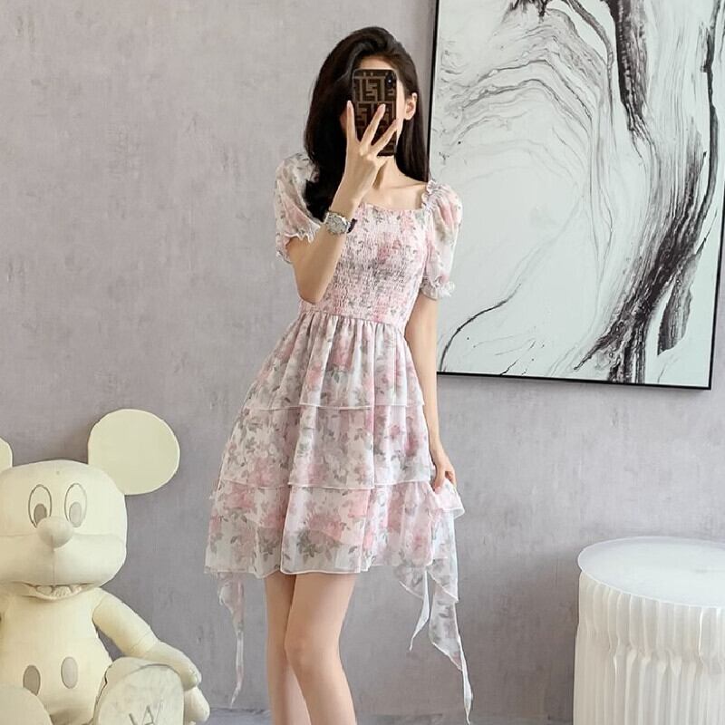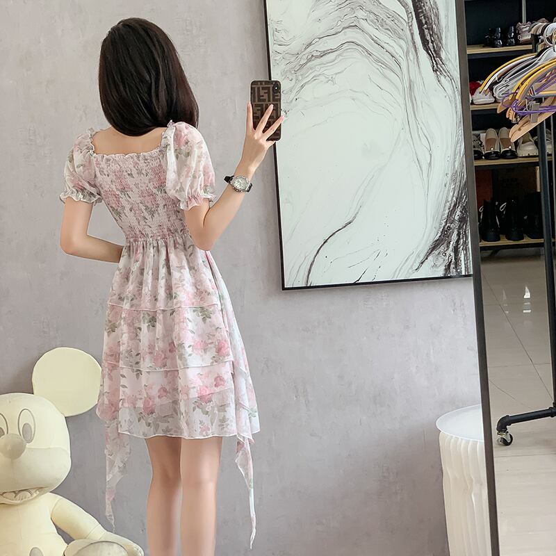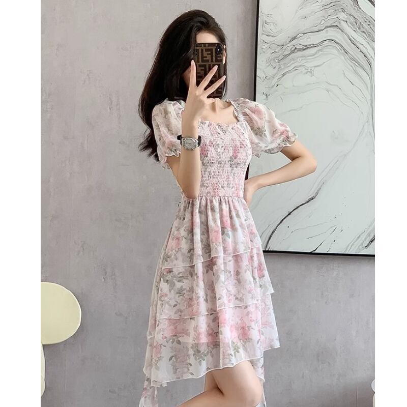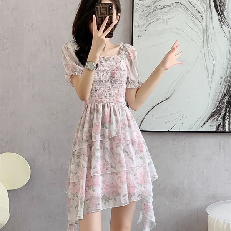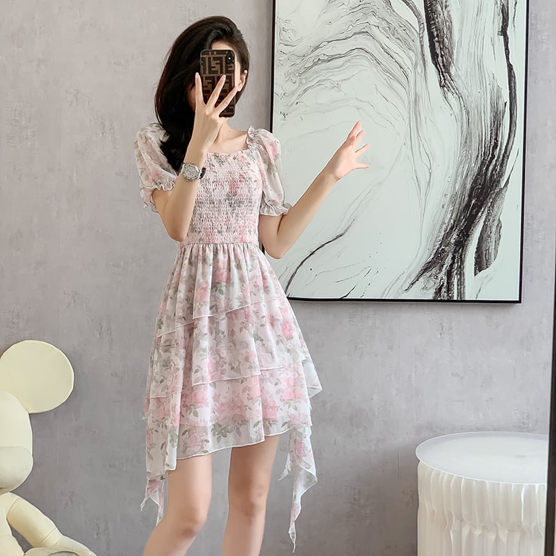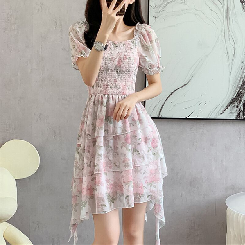 ワンピース 花柄 Aライン スウィート 大きいサイズ パフスリーブ S M L XL 2XL