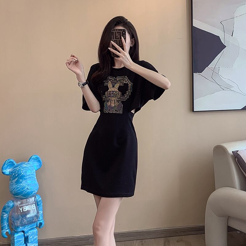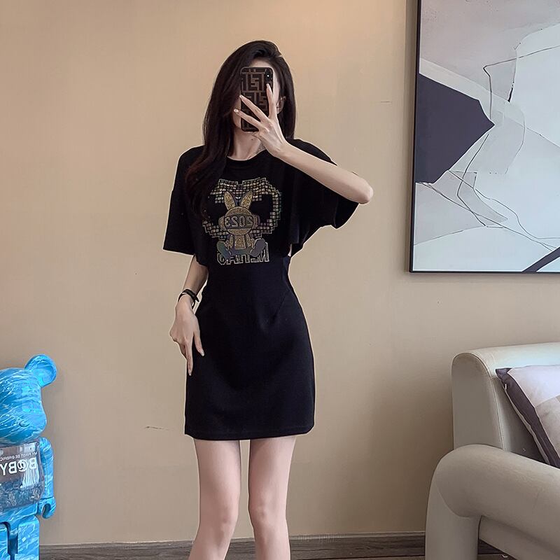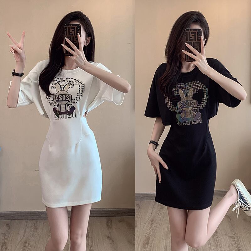 ワンピース OL/通勤 カジュアル プリント 大きいサイズ ブラック ホワイト M L XL 2XL 3XL