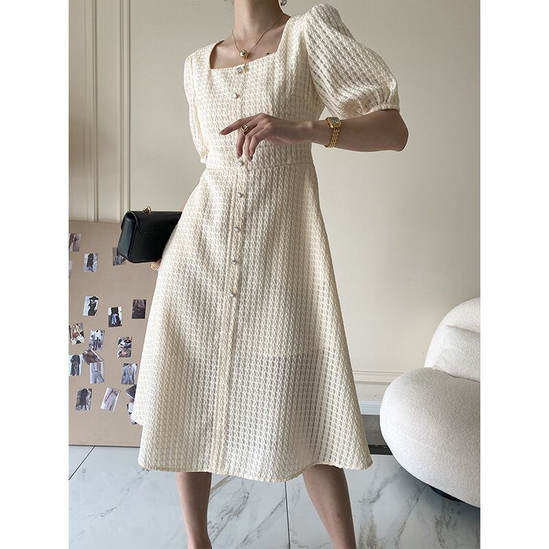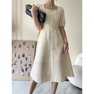 ワンピース OL/通勤 スクエアネック Aライン 中袖 ベージュ S M L