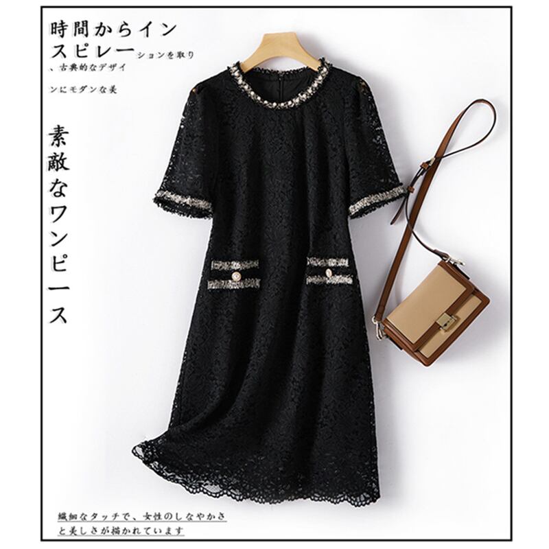 ワンピース 気質UP OL/通勤 レース Aライン ラウンドネック ブラック 大きいサイズ S M L XL 2XL