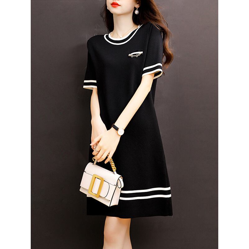 ワンピース OL/通勤 文芸風 ストライプ柄 Aライン ルーズ ベージュ ブラック S M L XL