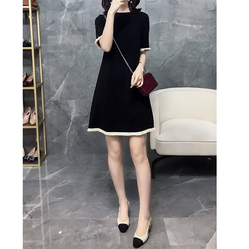 ワンピース ラウンドネック ニット OL/通勤 Aライン ルーズ ブラック S M L XL