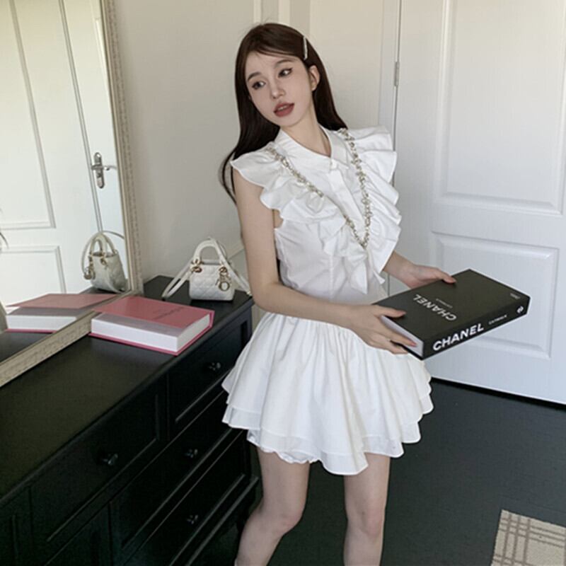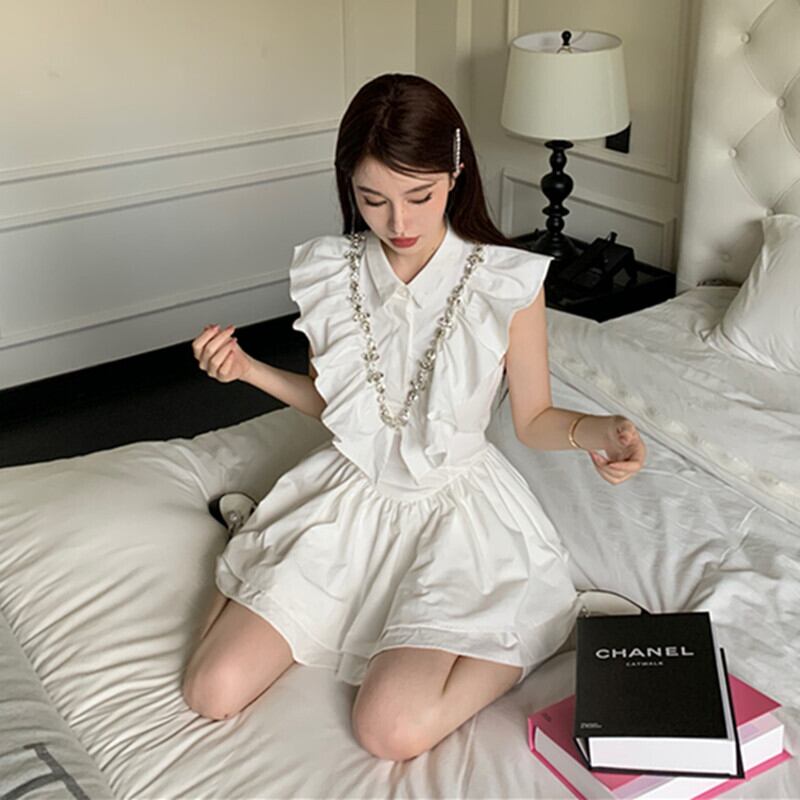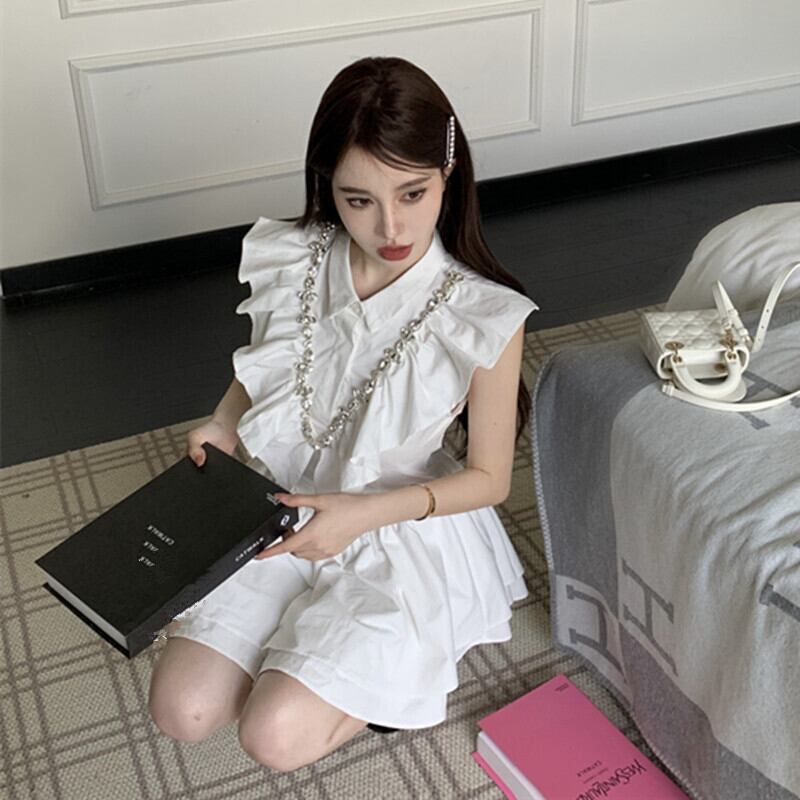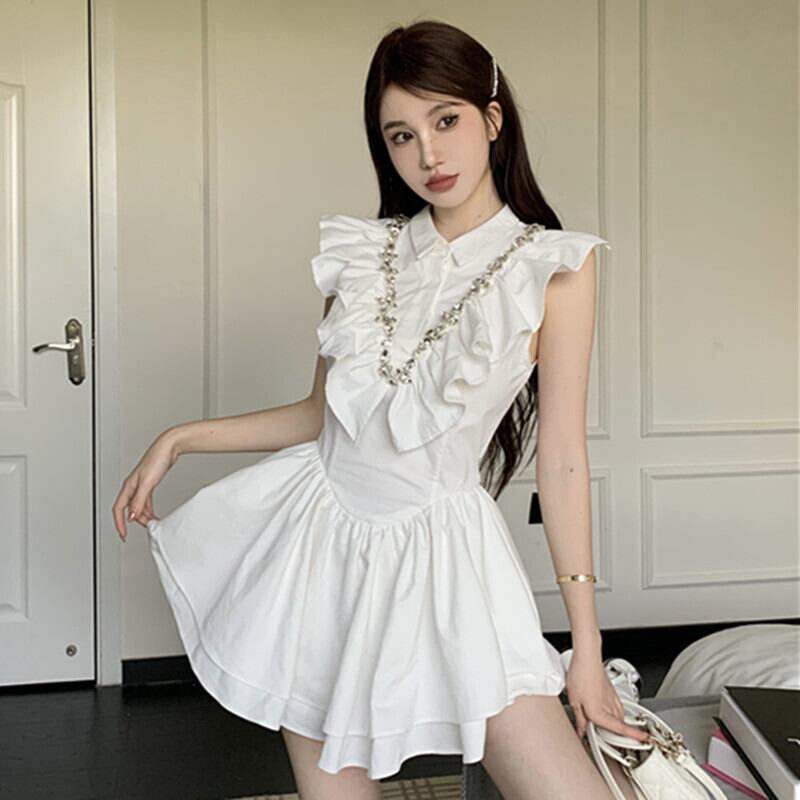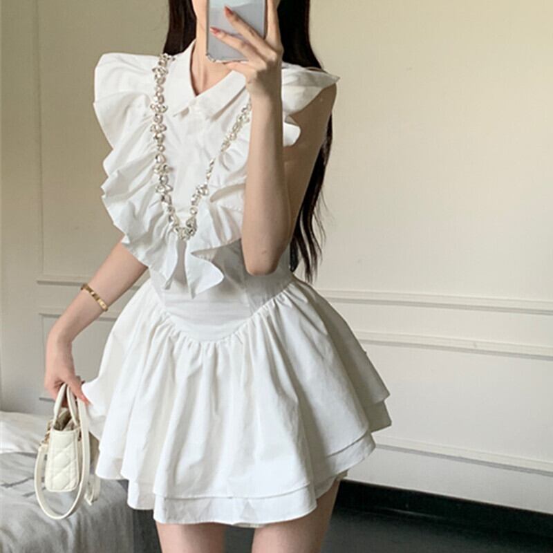 ワンピース Aライン ペプラム 魅せられる カジュアル ホワイト S M